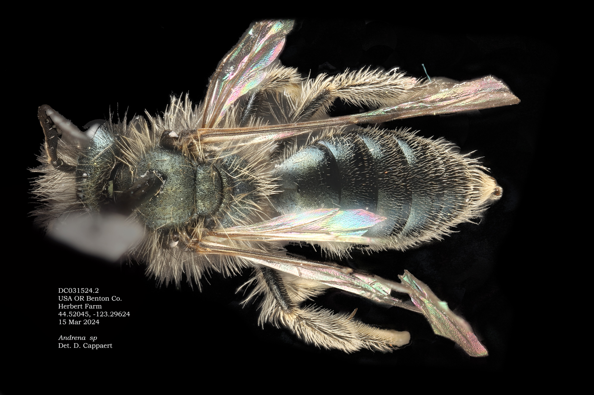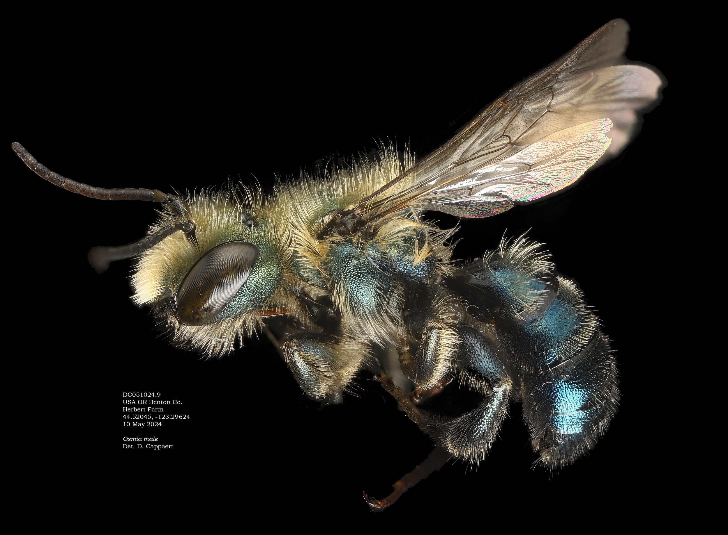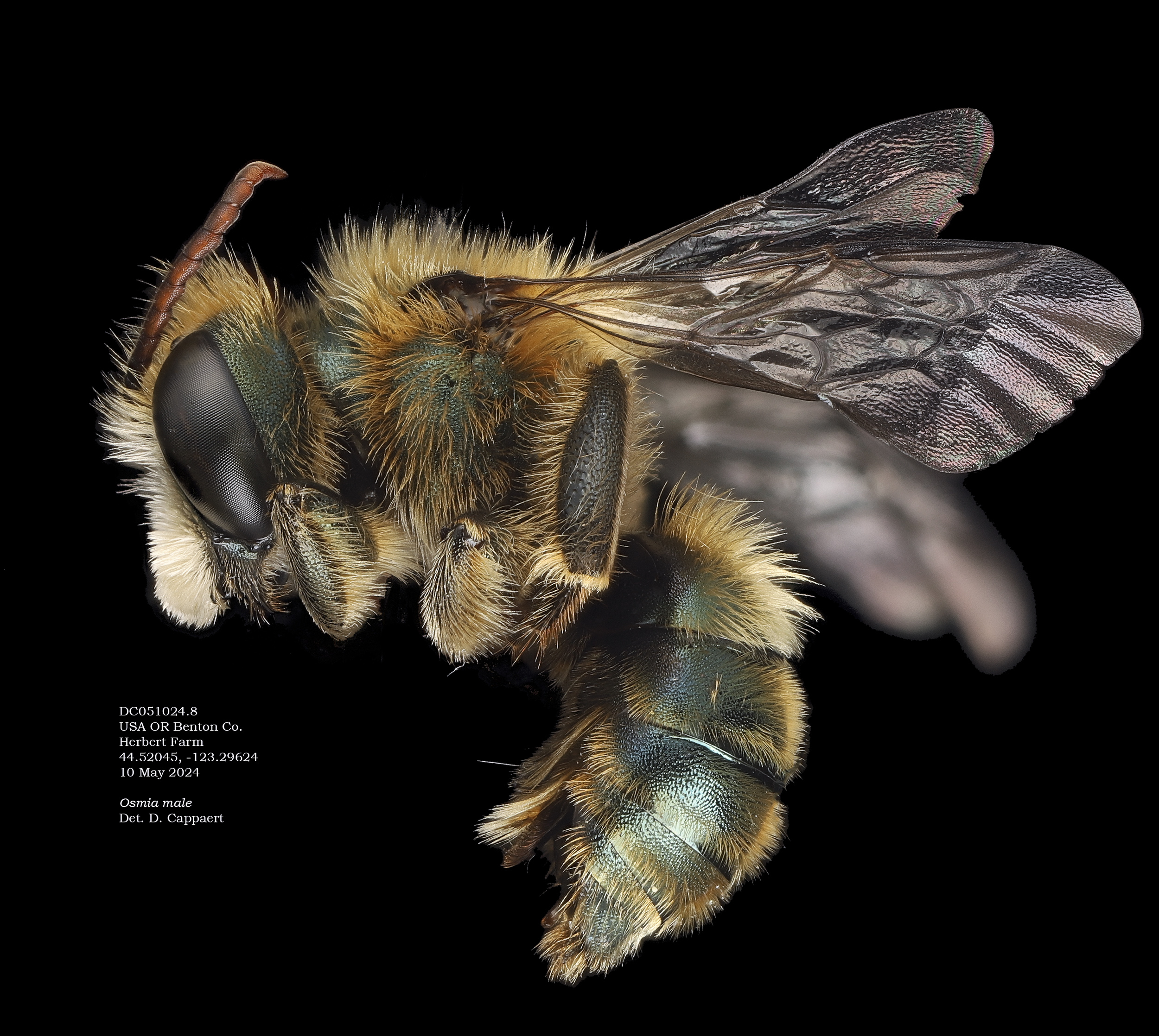 Insects of note, 2024 EditionI average about 1500 photos per year, mostly insects, which I post to iNaturalist for ID. On this page I record the subset that I find interesting, or particularly beautiful. The organization is reverse-chronological, with the oldest material (from Oregon) below the recent, mostly eastern observations. Many of these images are focus-stacked - see details. David Cappaert, Quamash EcoResearch. Find the 2025 edition here. Click any image for a larger magnification. |