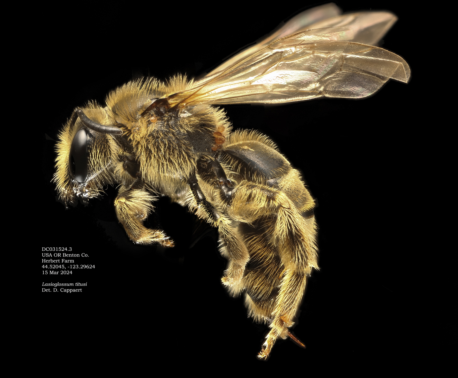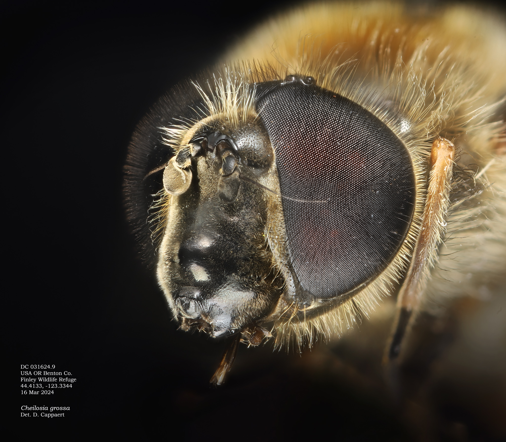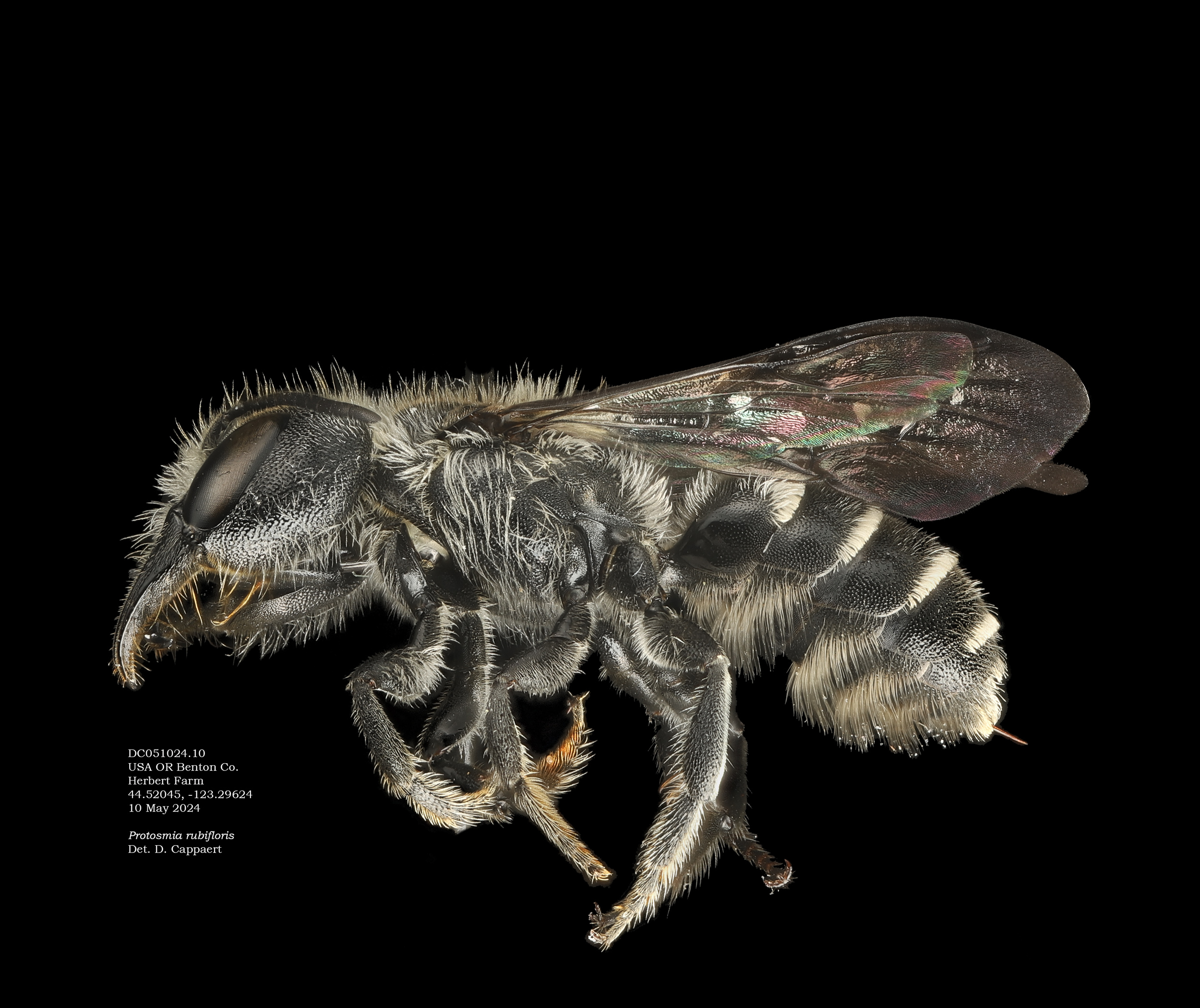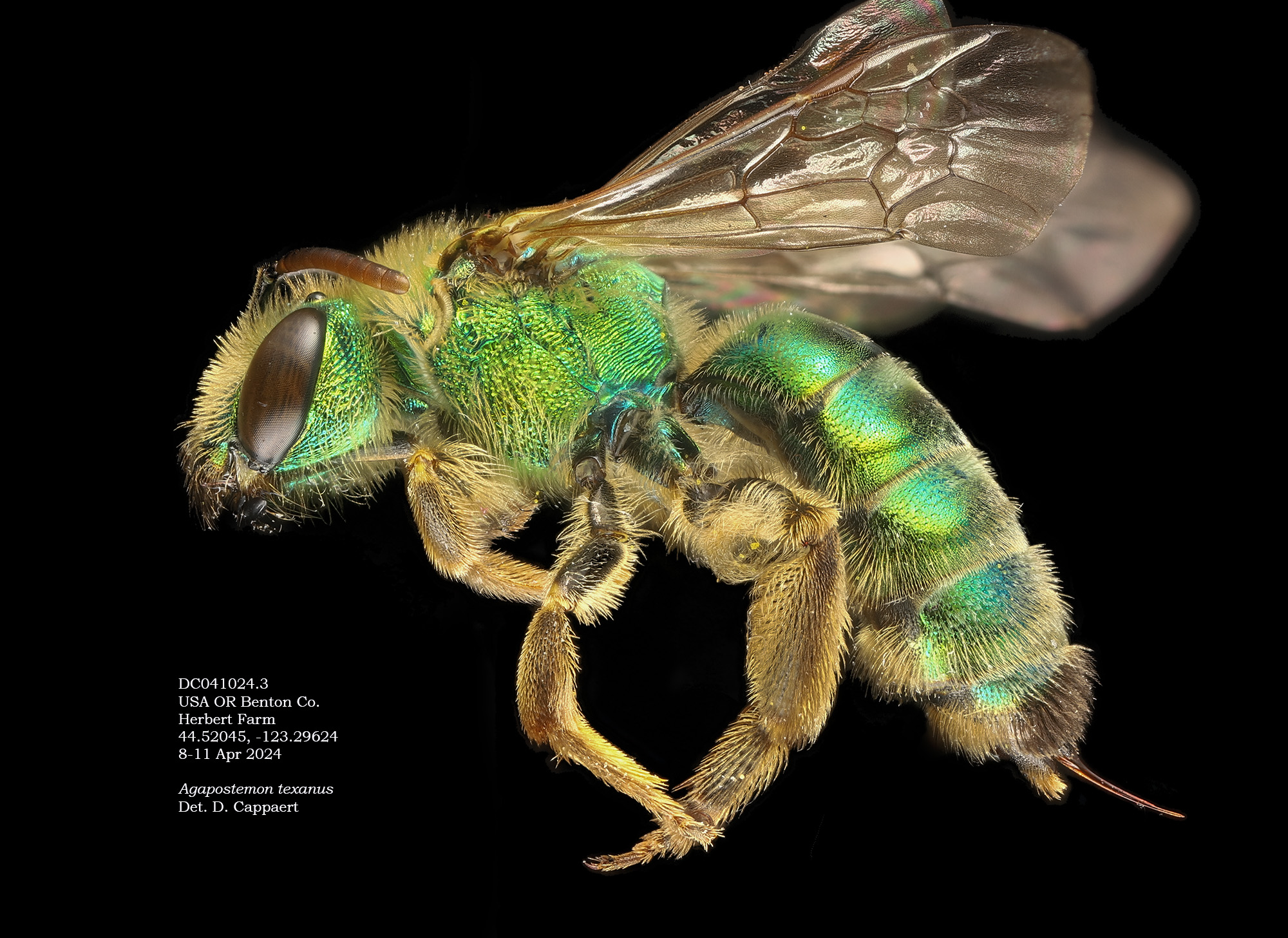 Insects of note, 2024 EditionI average about 1500 photos per year, mostly insects, which I post to iNaturalist for ID. On this page I record the subset that I find interesting, or particularly beautiful. The organization is reverse-chronological, with the oldest material (from Oregon) below the recent, mostly eastern observations. Many of these images are focus-stacked - see details. David Cappaert, Quamash EcoResearch. Find the 2025 edition here. Click any image for a larger magnification. |