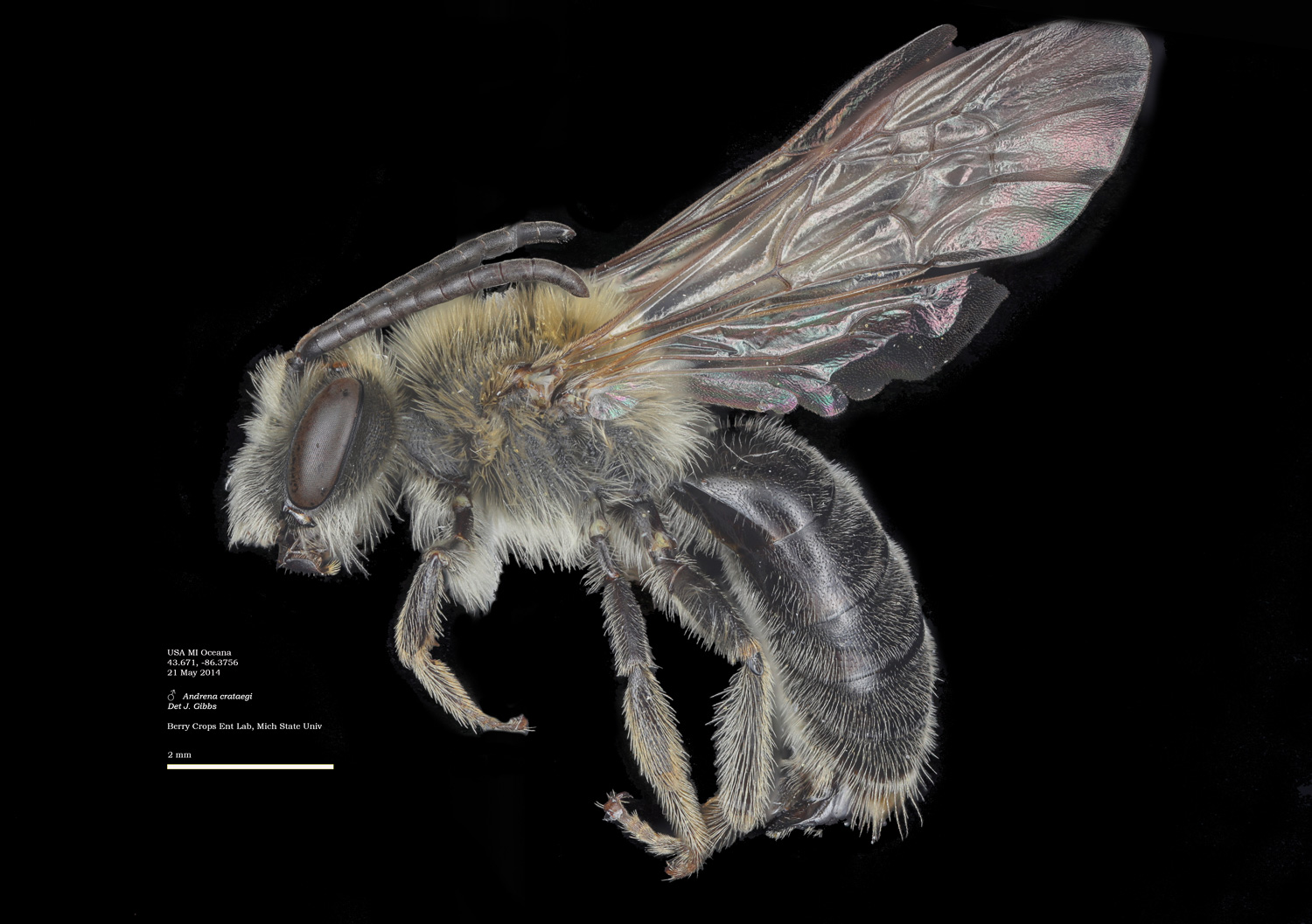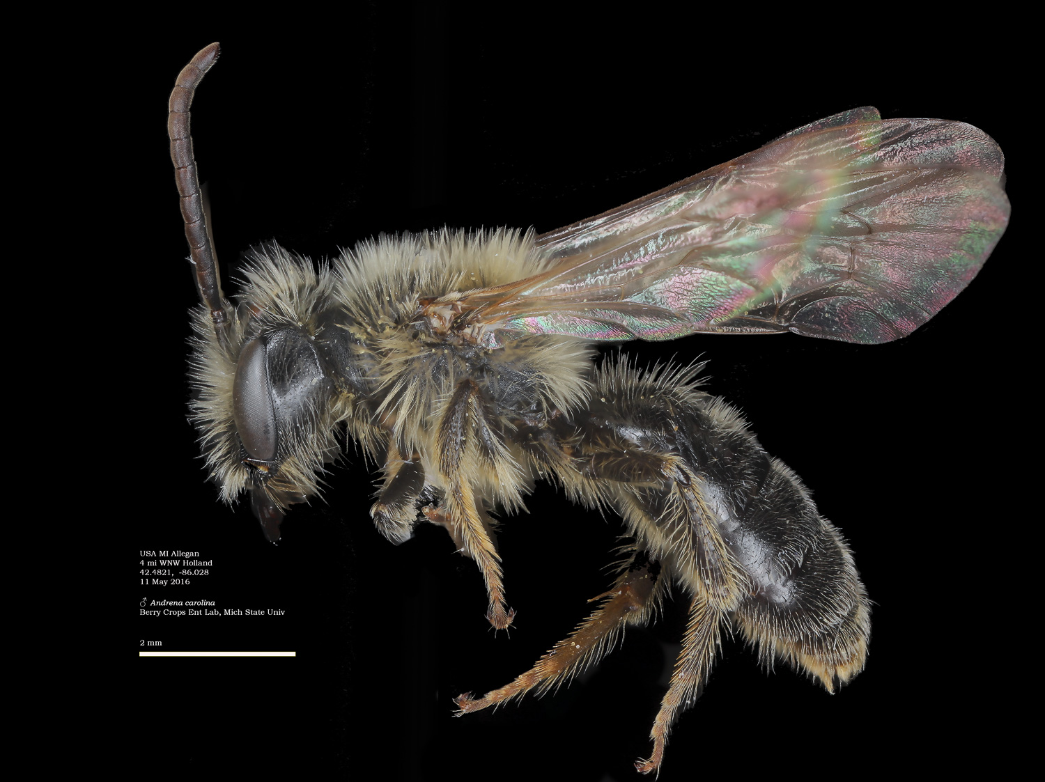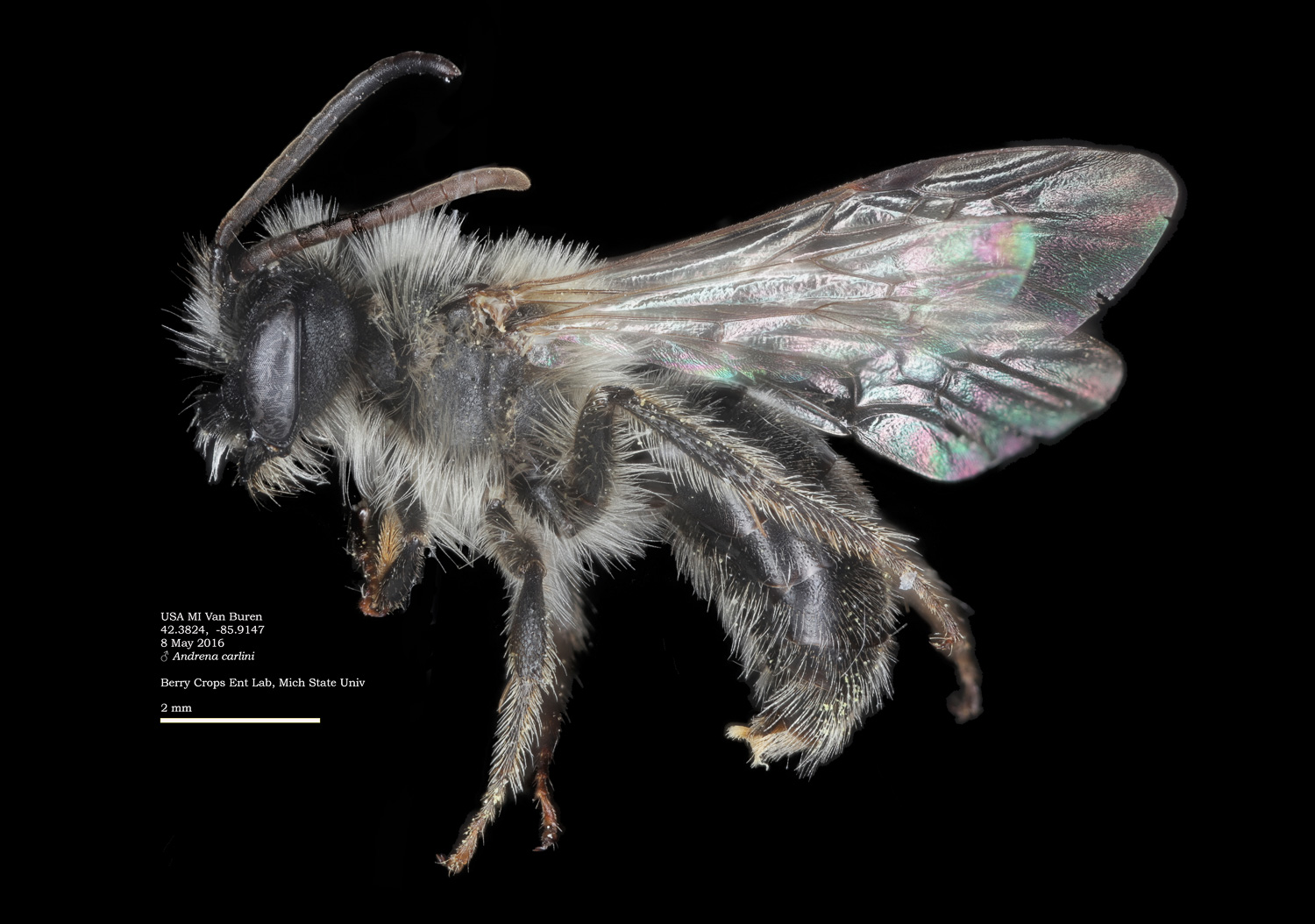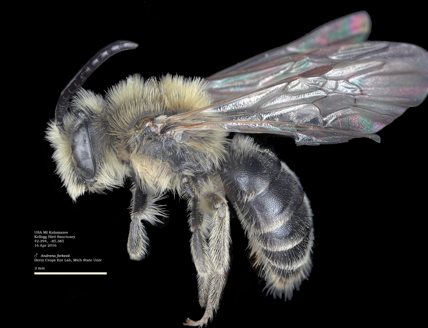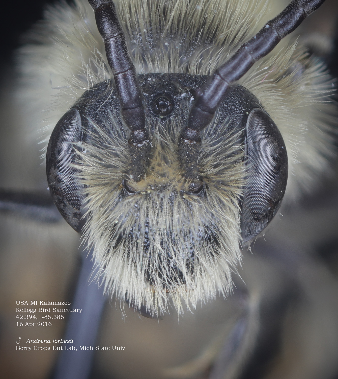 Second tranche of specimens from Rufus Isaac's lab at MSU: Andrena, male and female exemplars. I've used this material to update the Andrena guide.