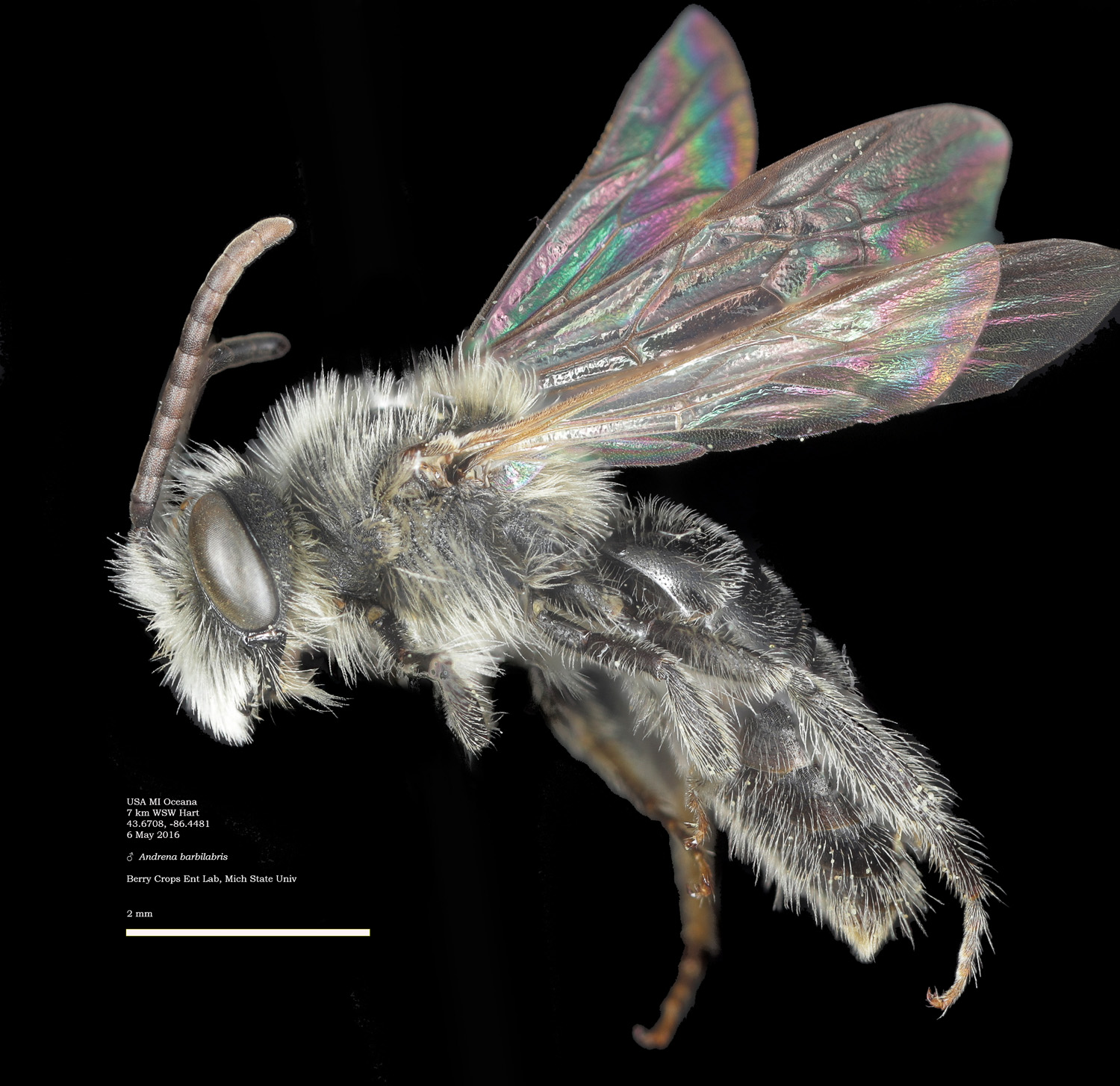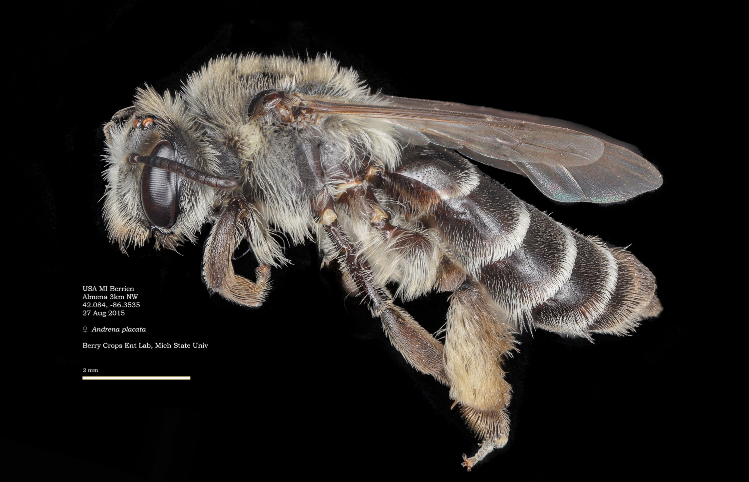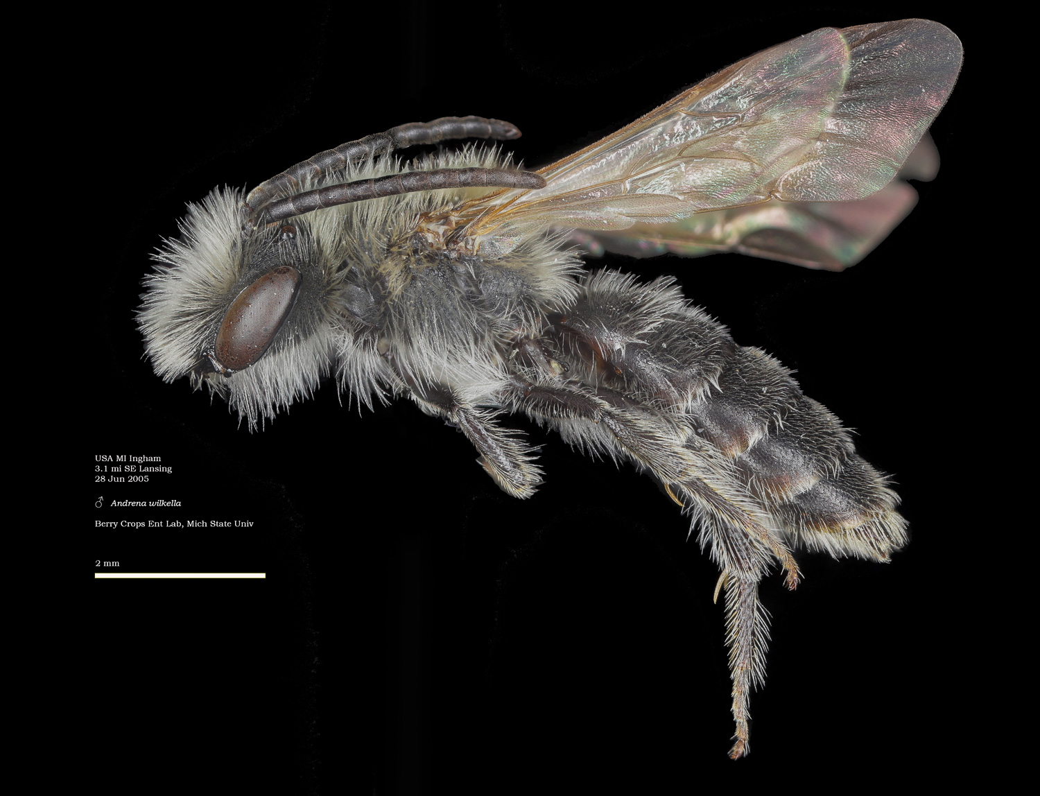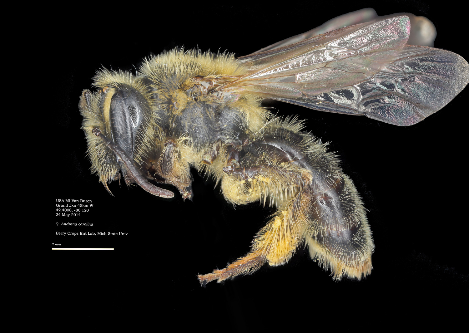 Second tranche of specimens from Rufus Isaac's lab at MSU: Andrena, male and female exemplars. I've used this material to update the Andrena guide.