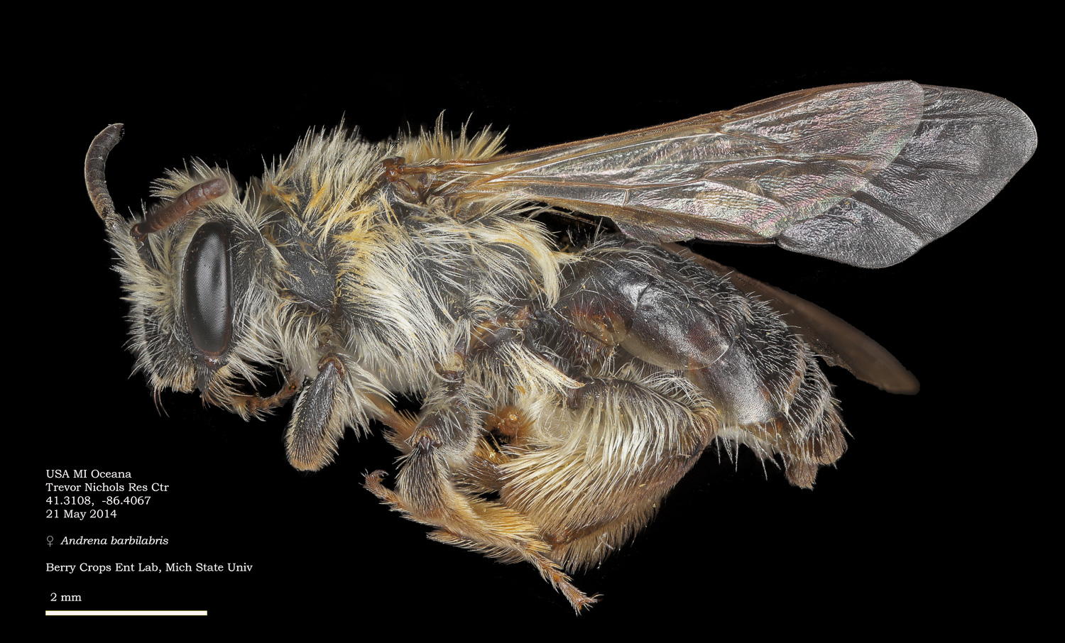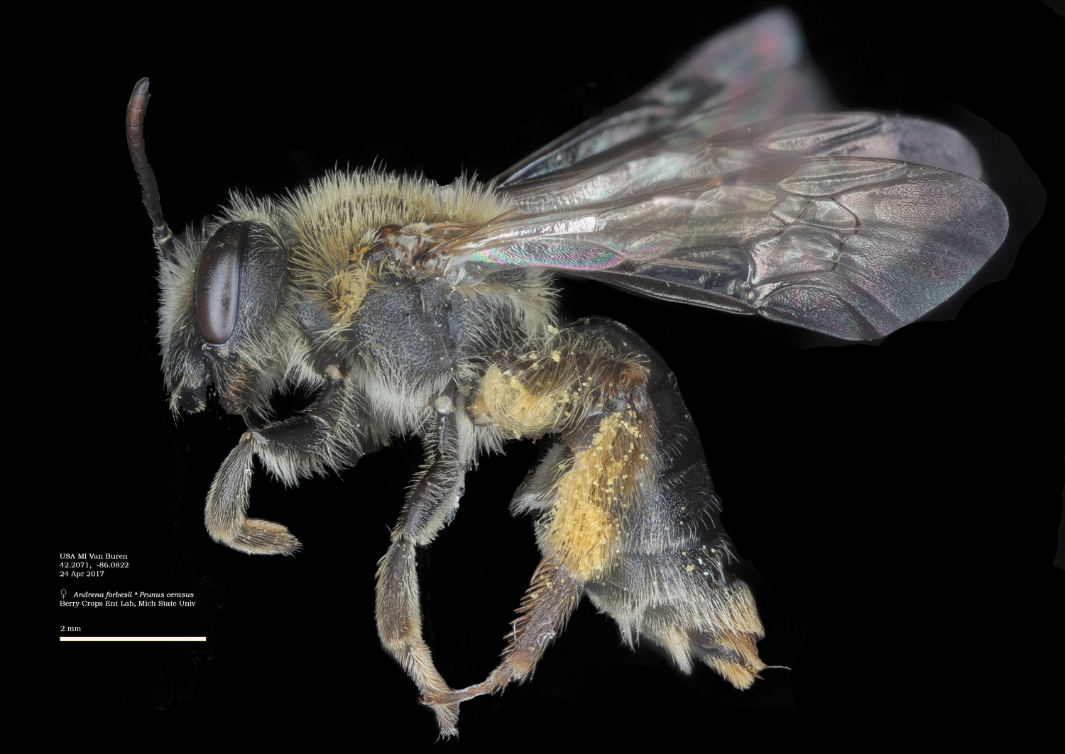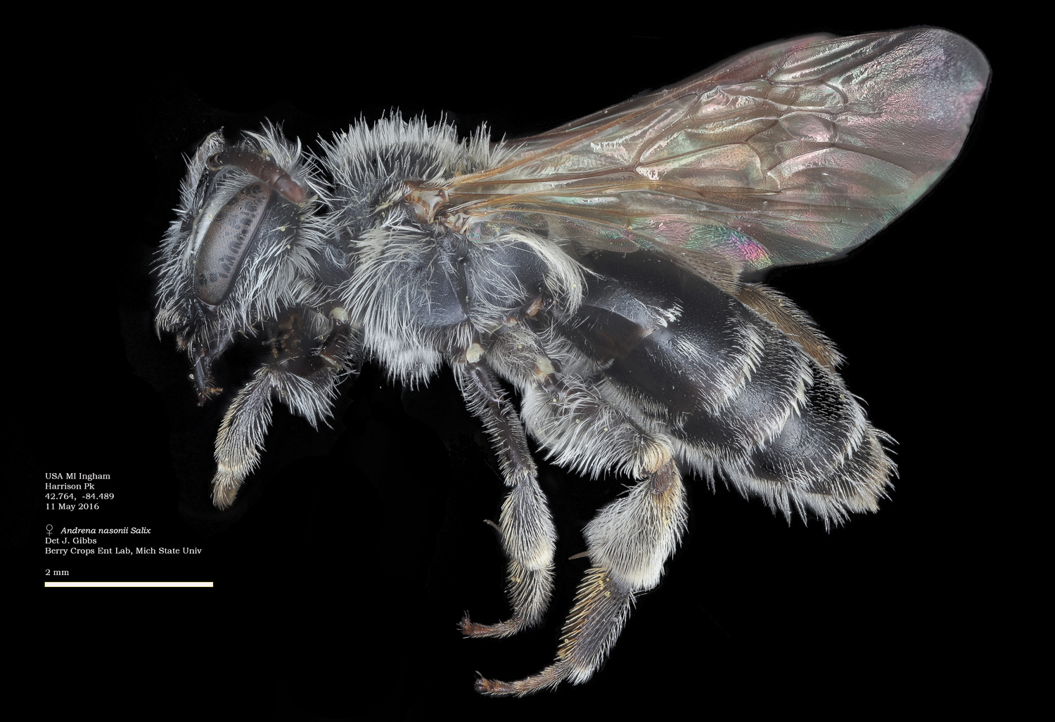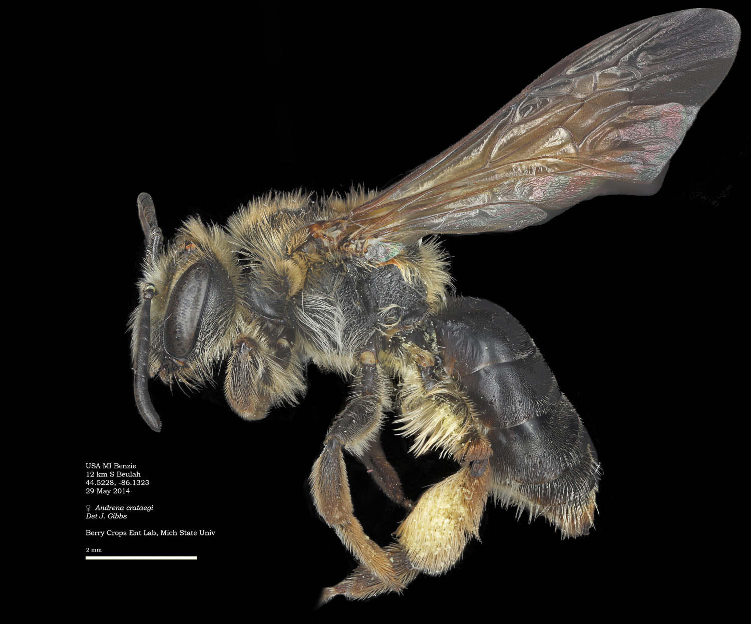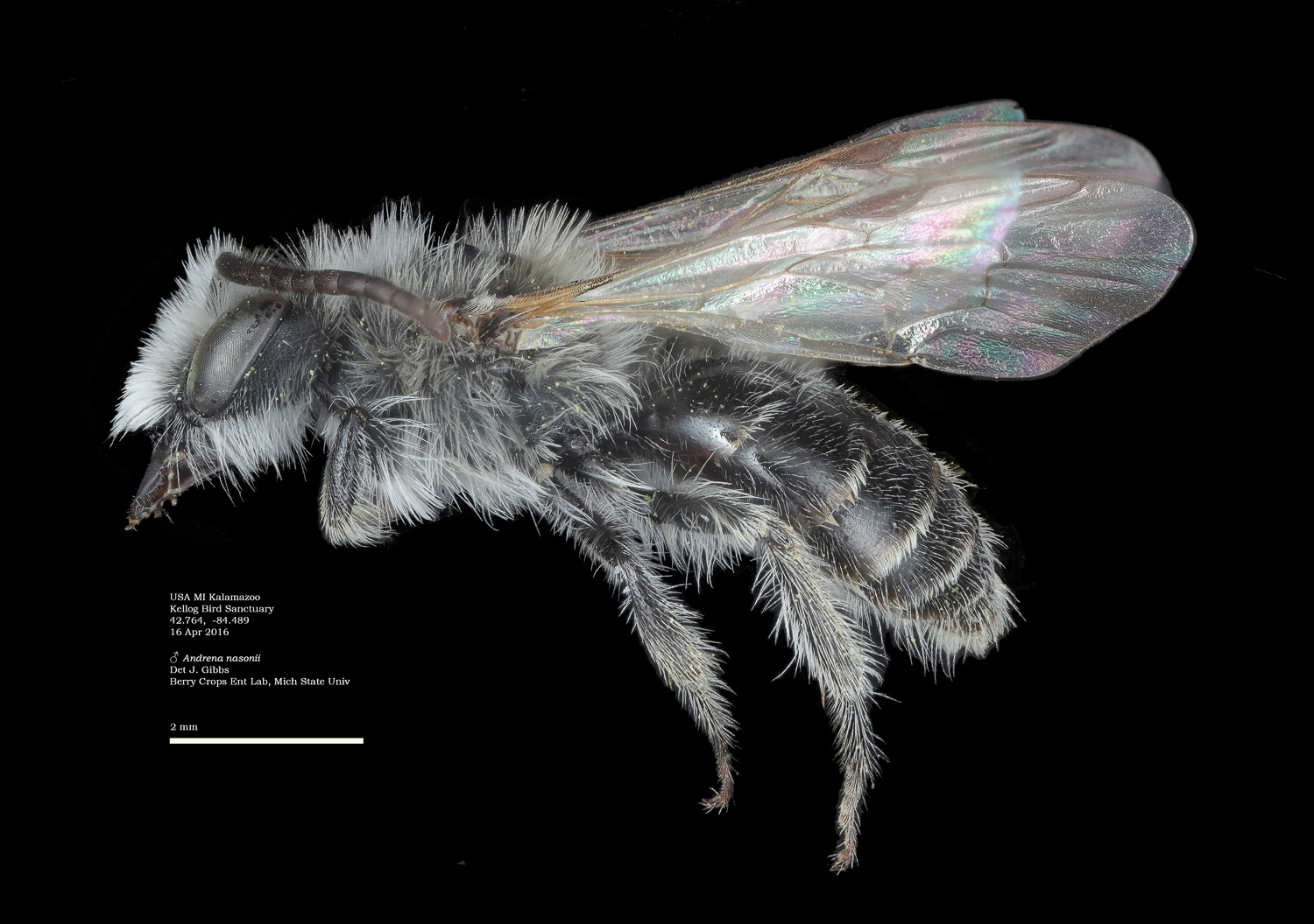 Second tranche of specimens from Rufus Isaac's lab at MSU: Andrena, male and female exemplars. I've used this material to update the Andrena guide.