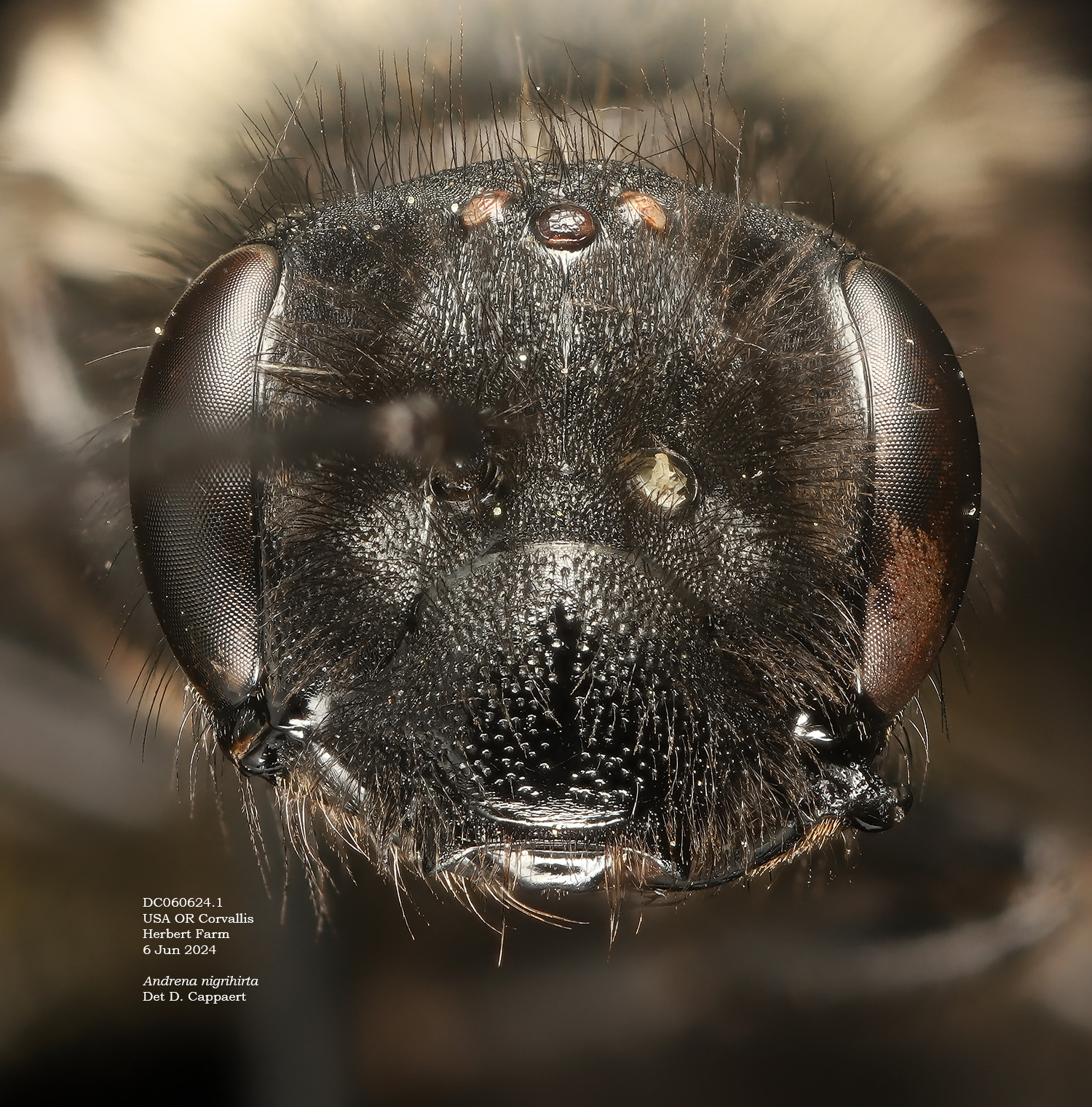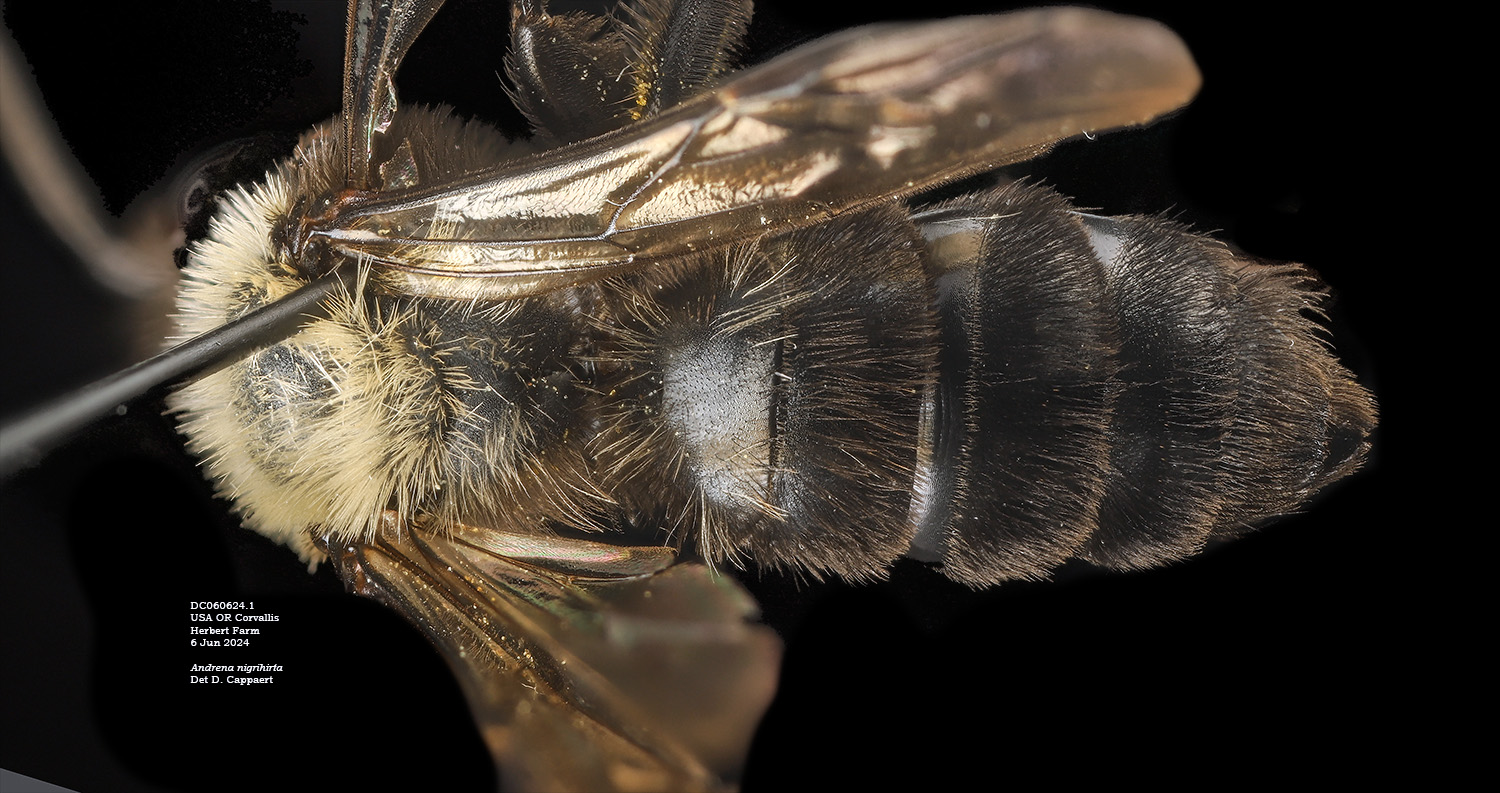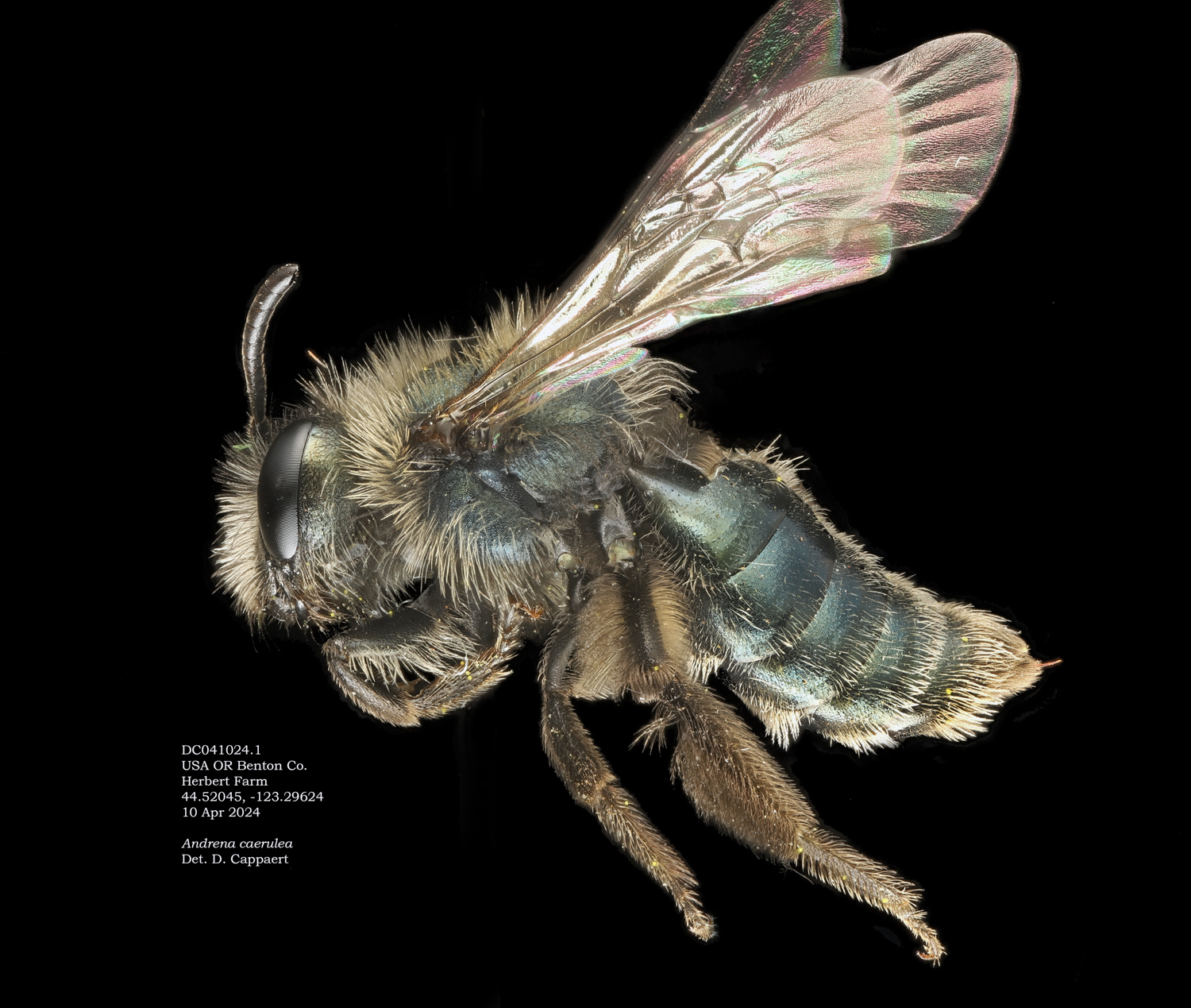 March 30, Andrena question. In the row below, a specimen that is clearly nigrocaerulea, a match for all character states, and ... obviously nigrocaerulea.