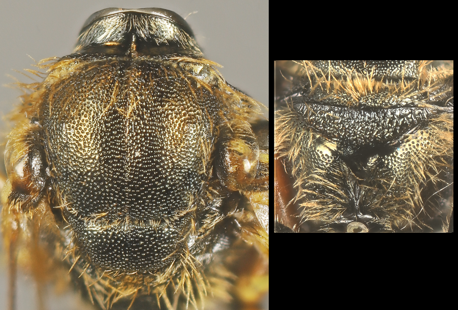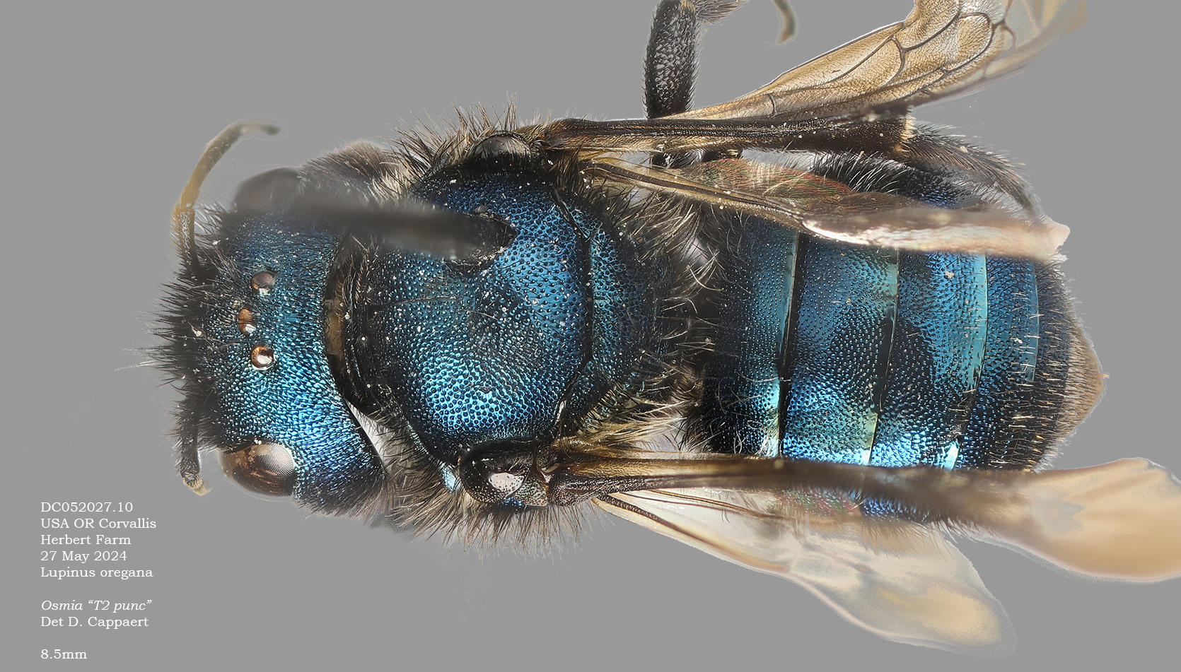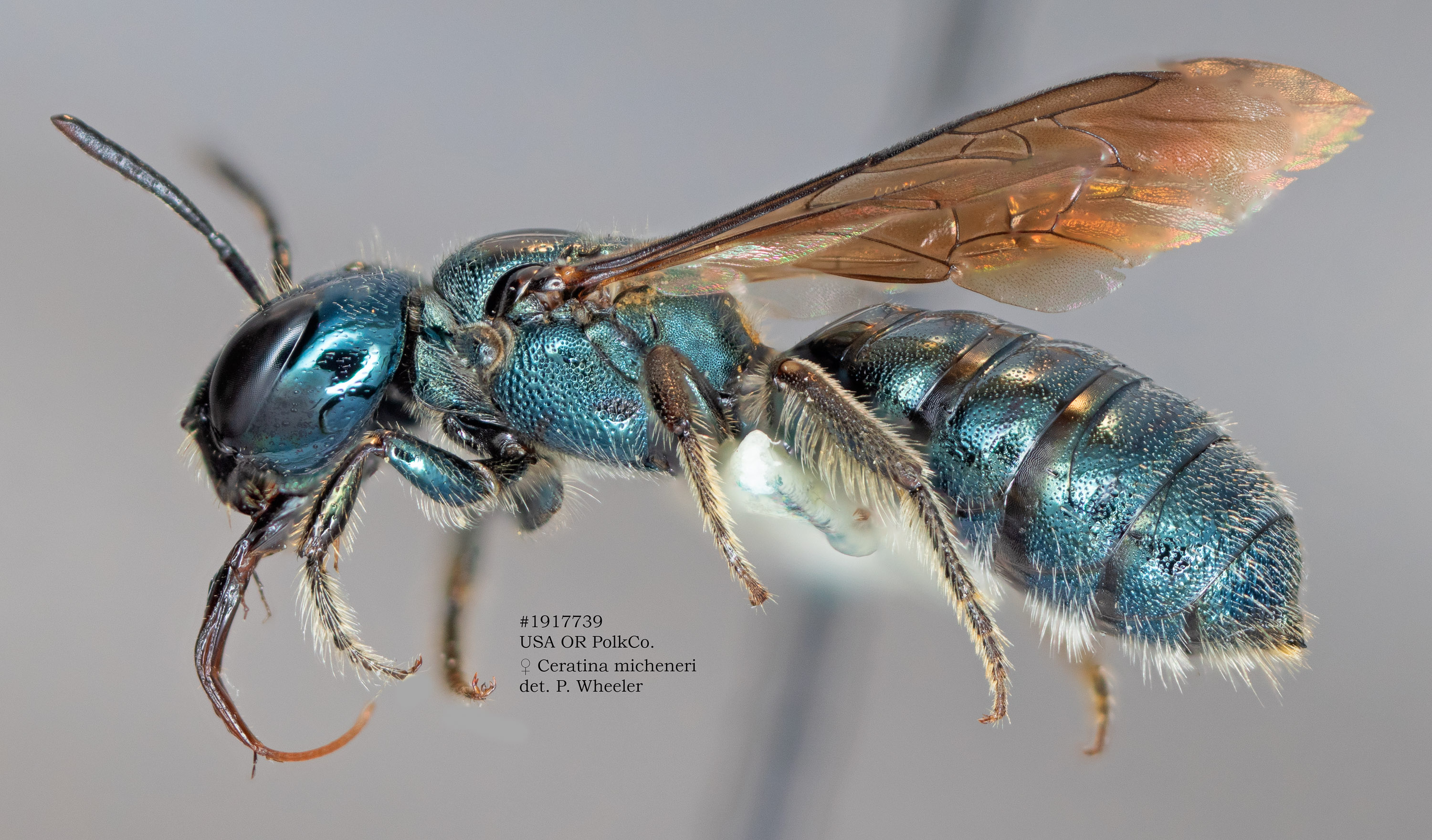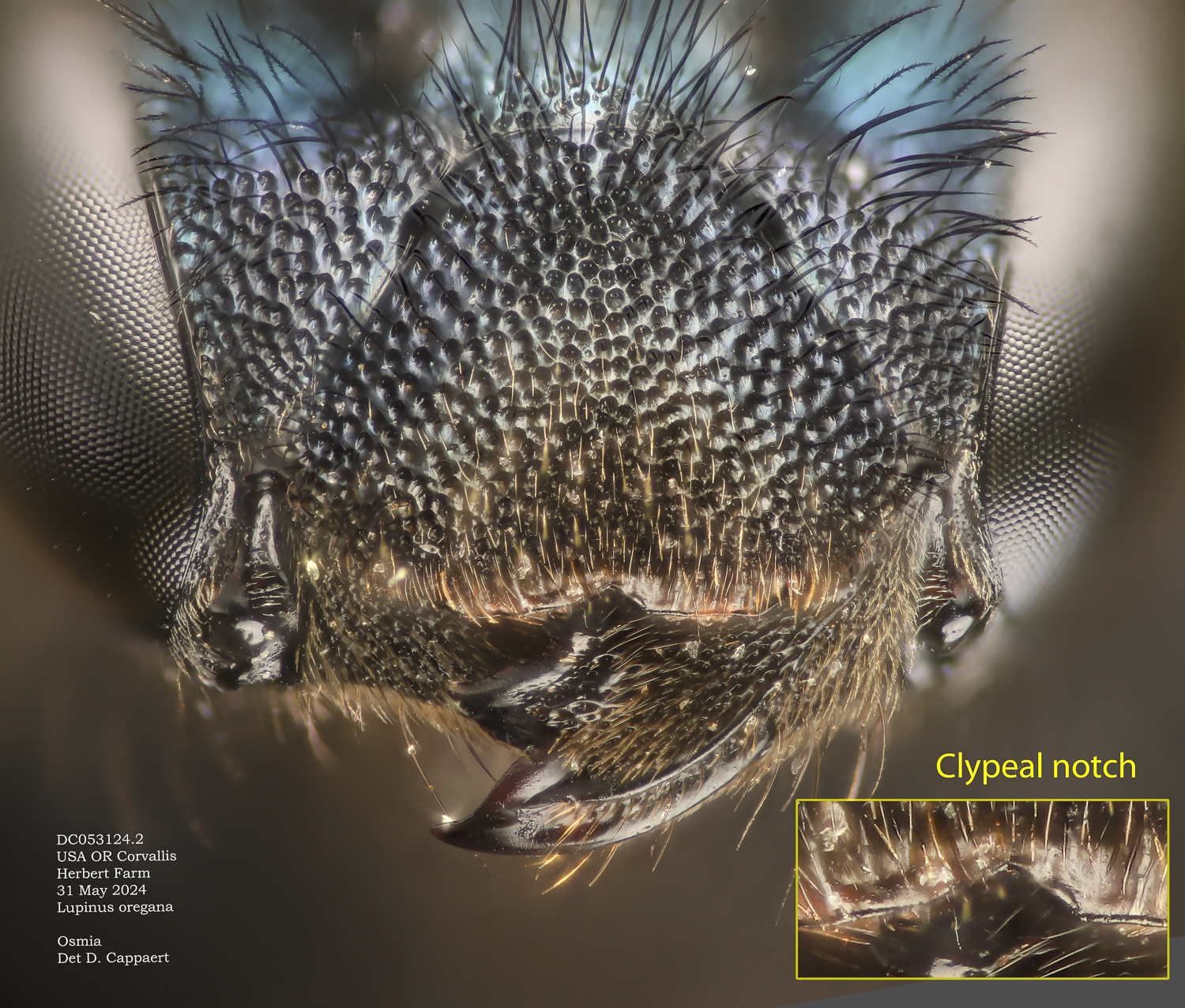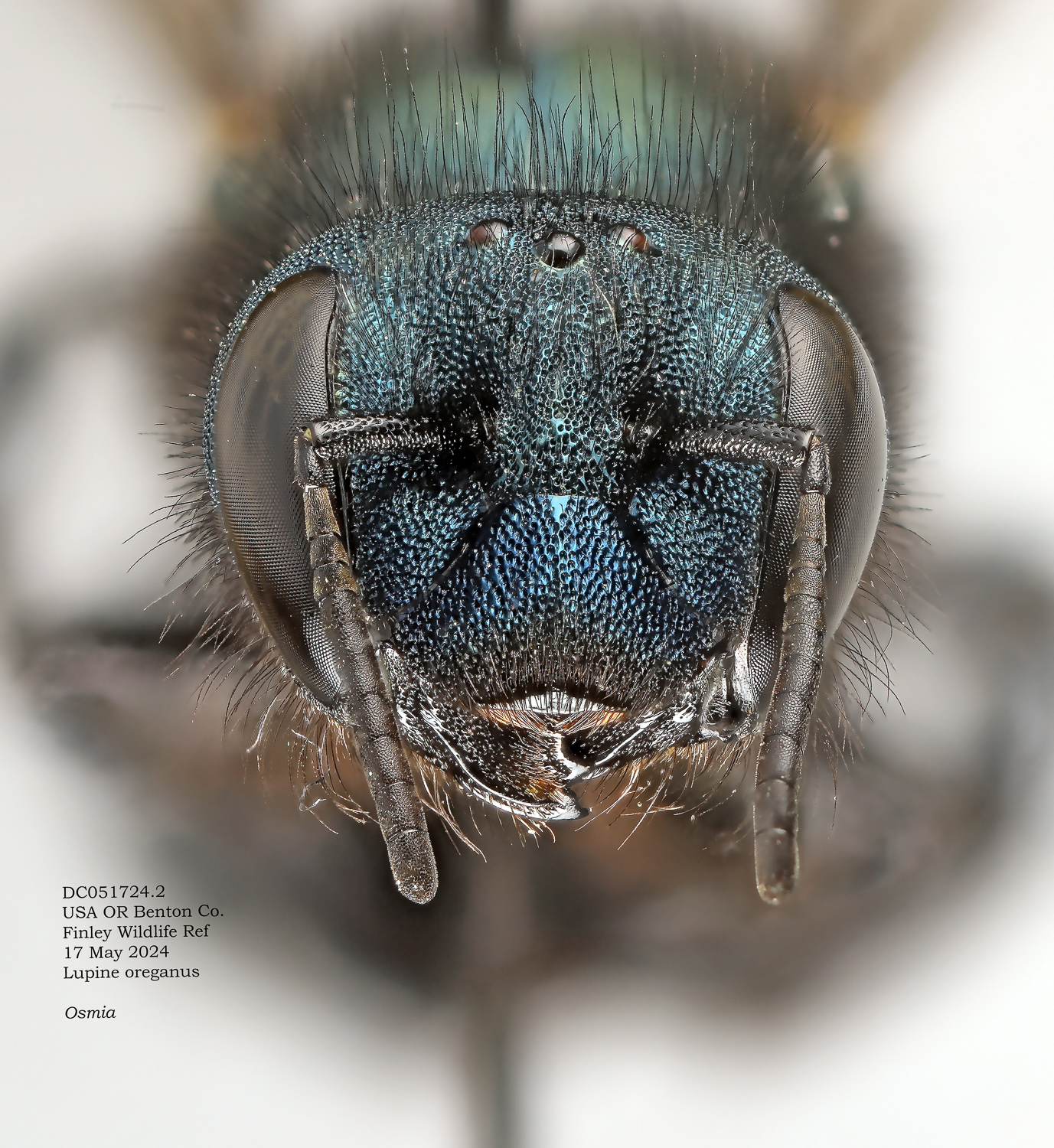 C. micheneri from OR Bee Atlas collection: compare to pic above. The stronger bluer shade is a C. micheneri trait. Clypeal mark absent. The pit distribution appears different.