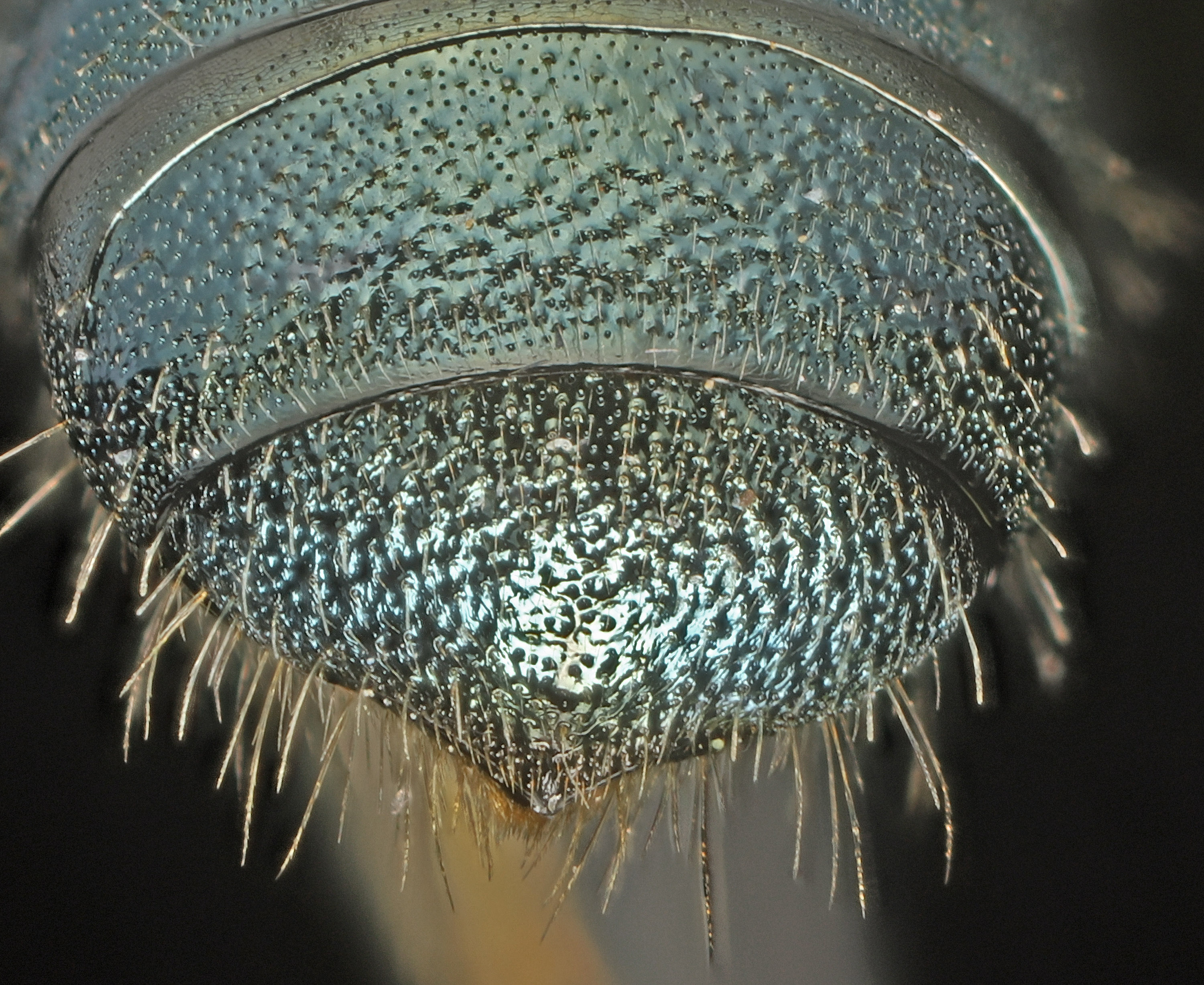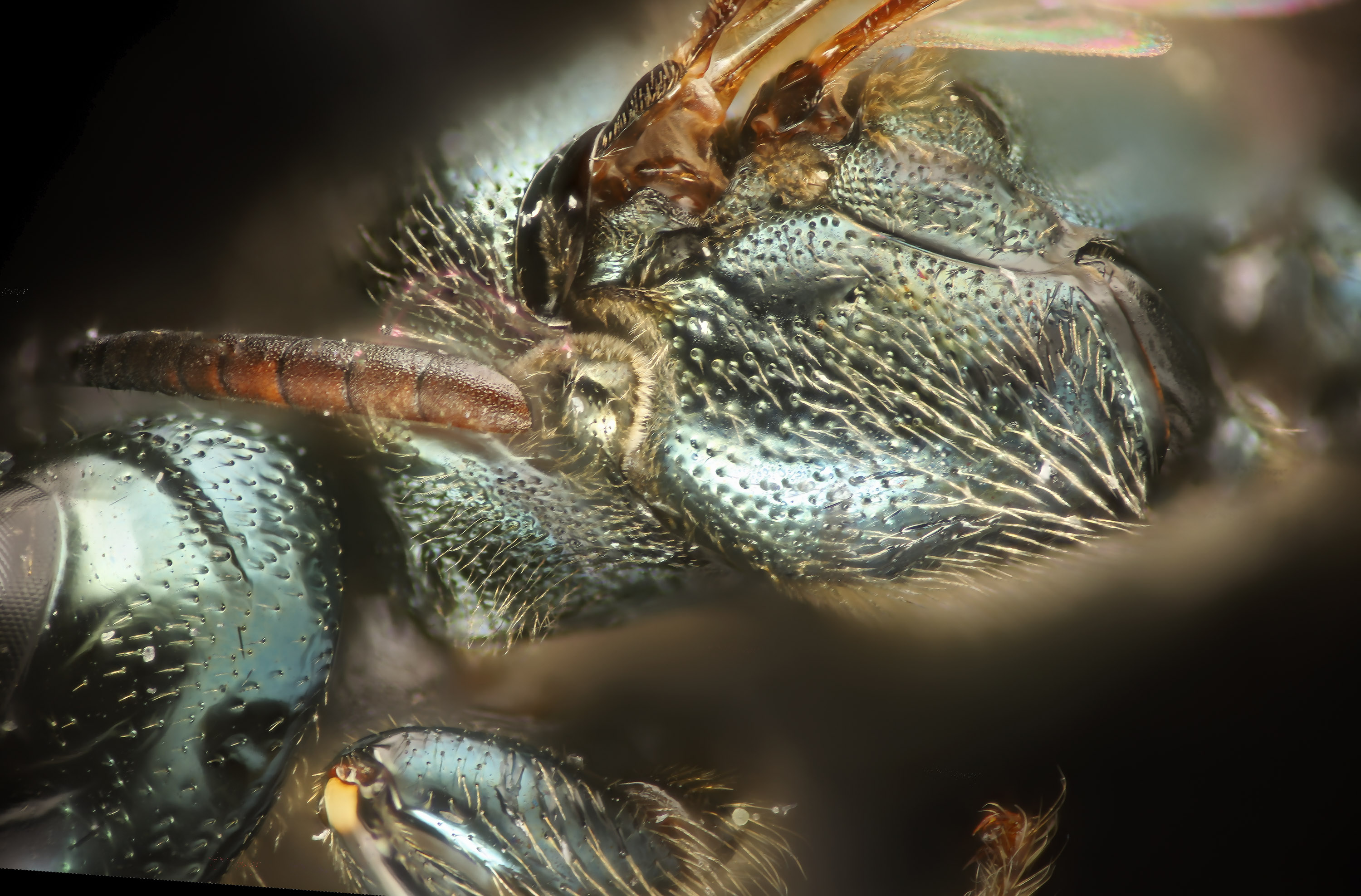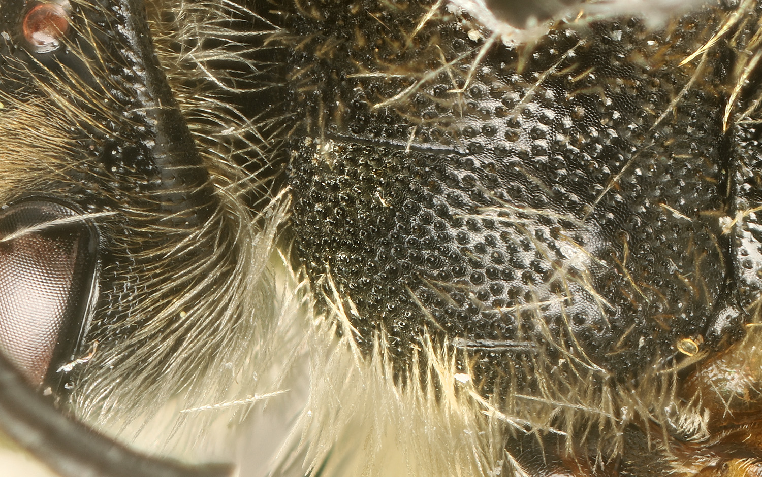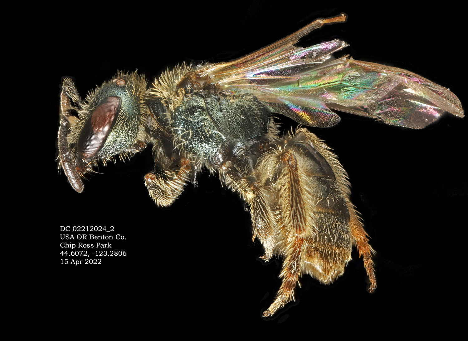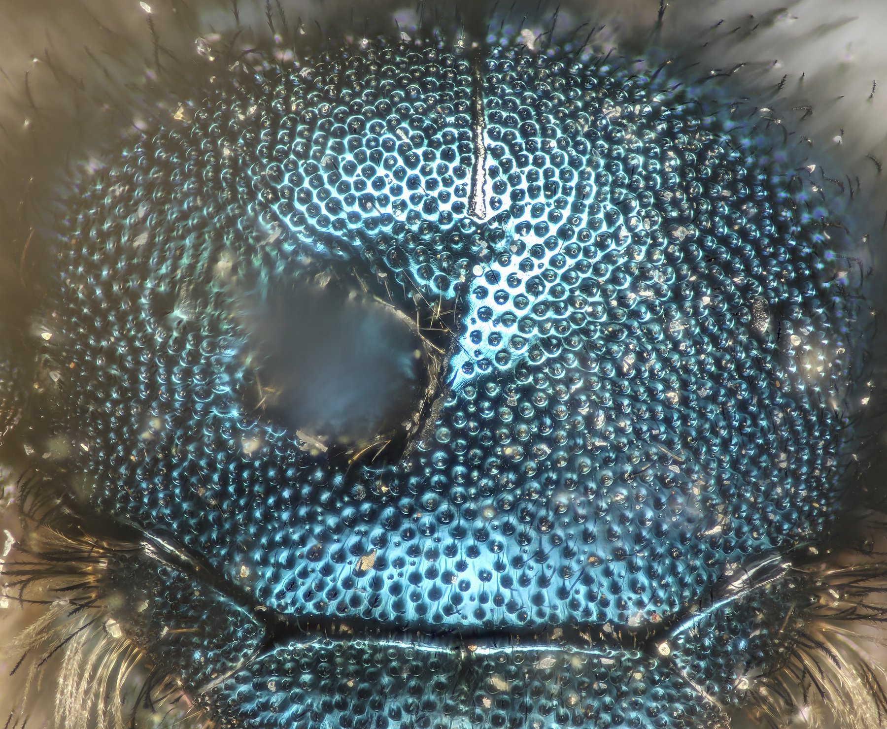 C. micheneri from OR Bee Atlas collection: compare to pic above. The stronger bluer shade is a C. micheneri trait. Clypeal mark absent. The pit distribution appears different.