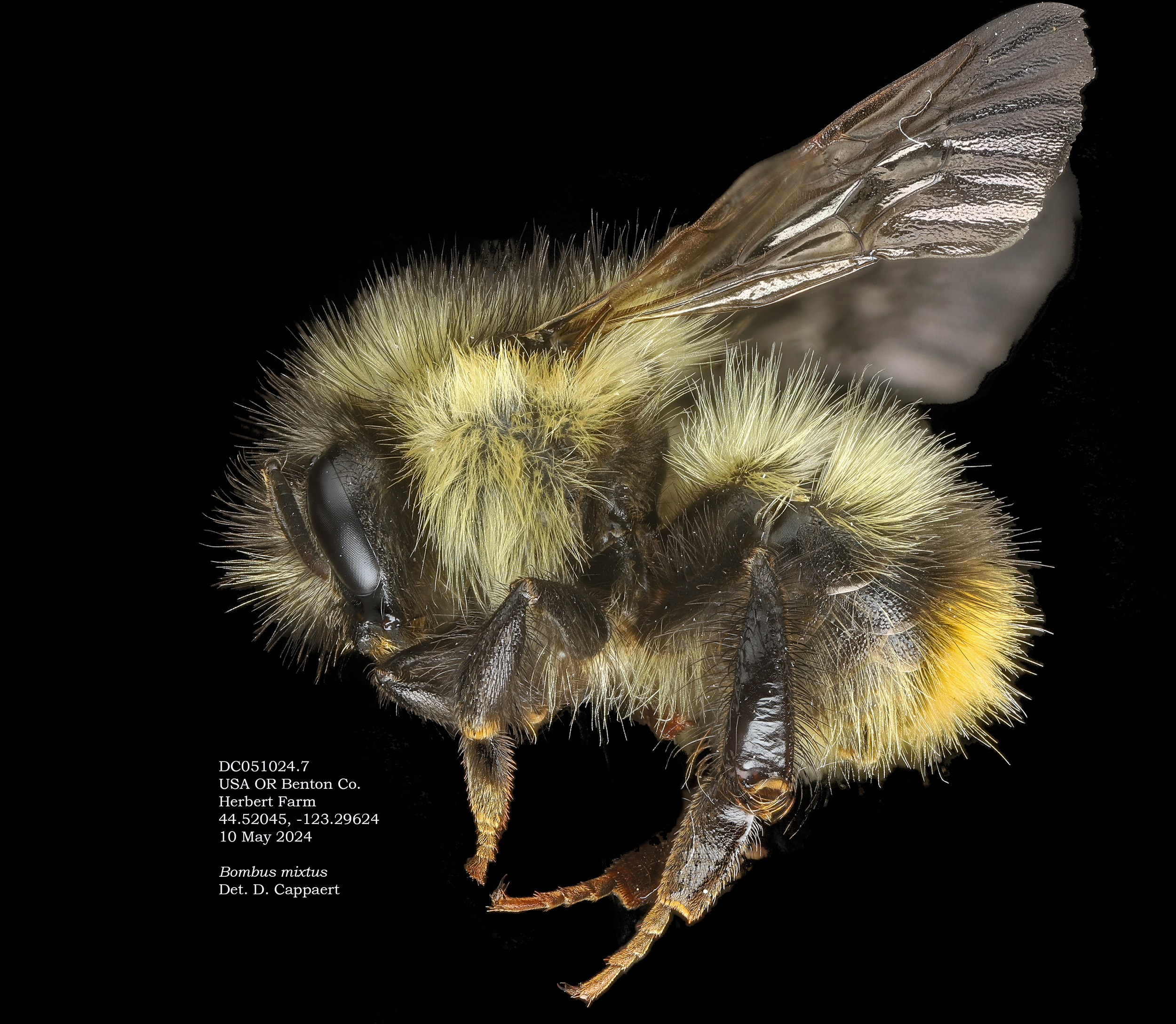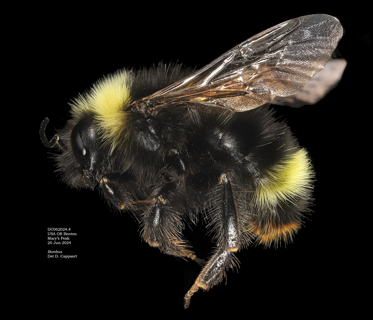Recent BombusI am beginning to shoot examples of any PNW Bombus I can get. Because the variation is interesting. And because to my knowledge there is not a reference set of focus-stacked images for these bees. These are from elevation - Mary's Peak, and the Cascades. |