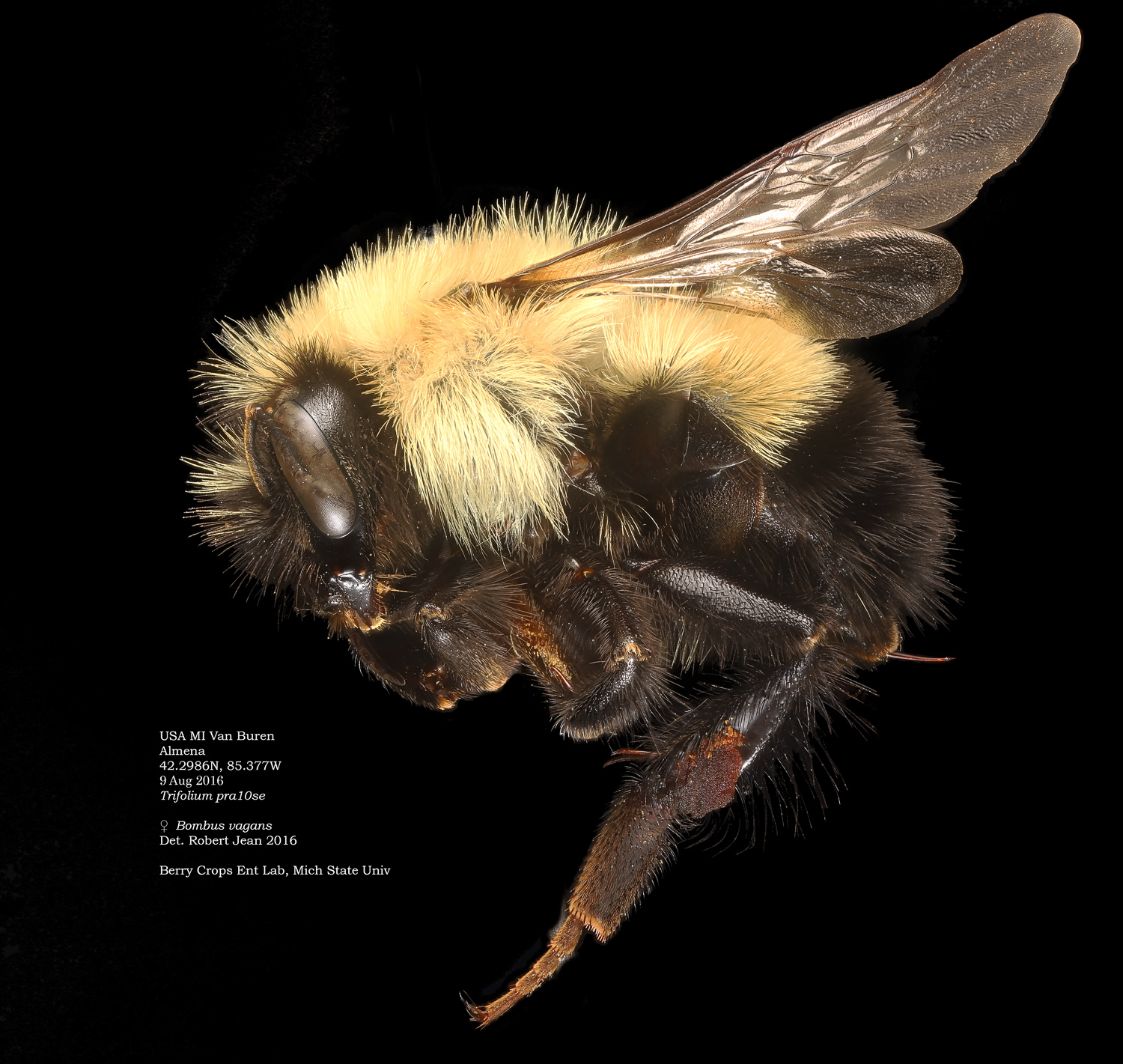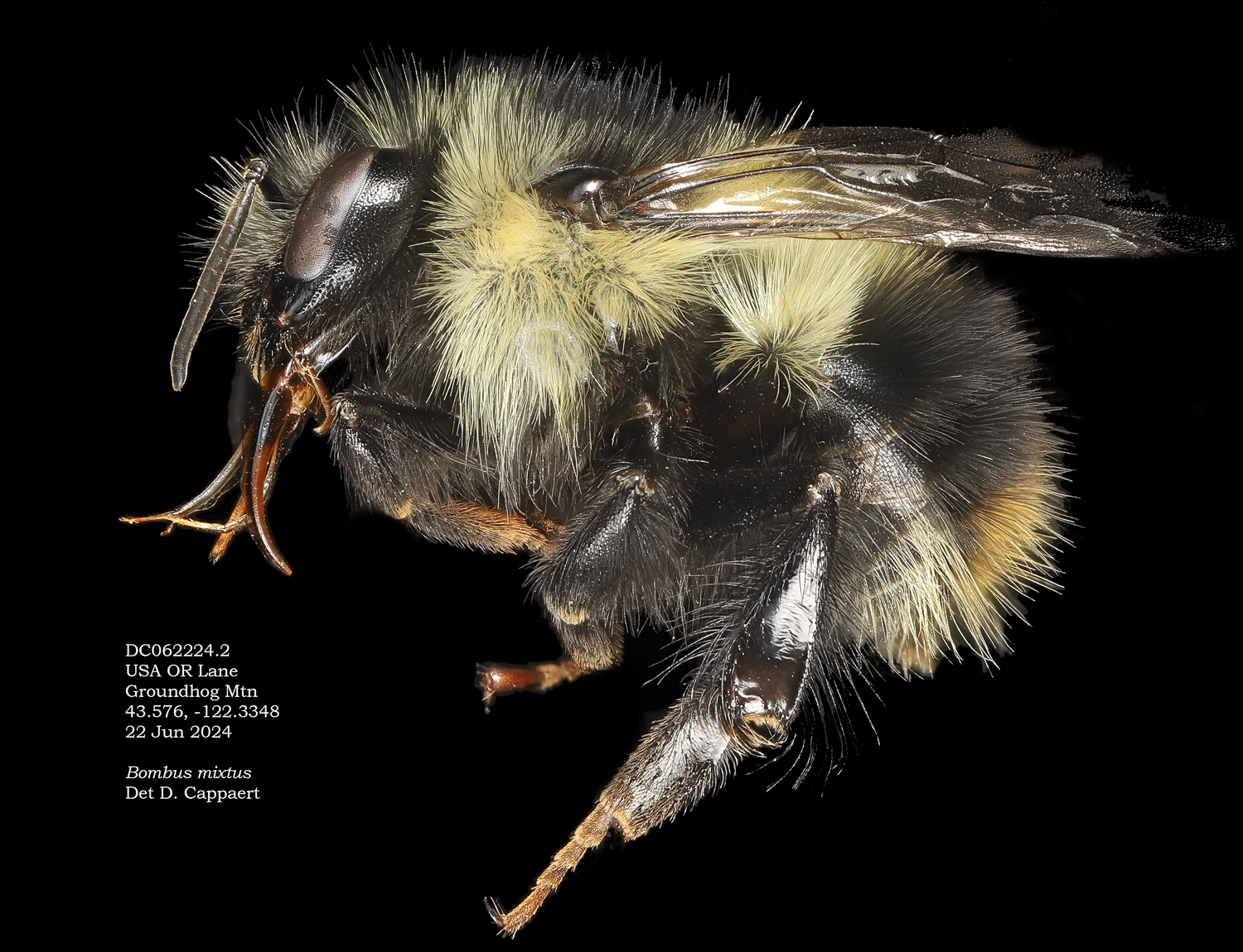![]() Above: Bombus vancouverensis (beemachine ID). Below: B. melanopygus male. Bottom: B. mixtus.