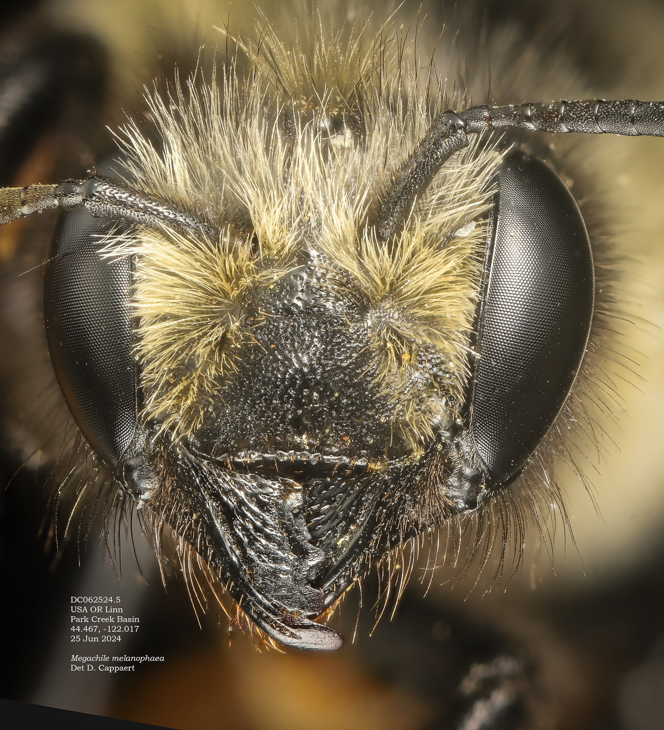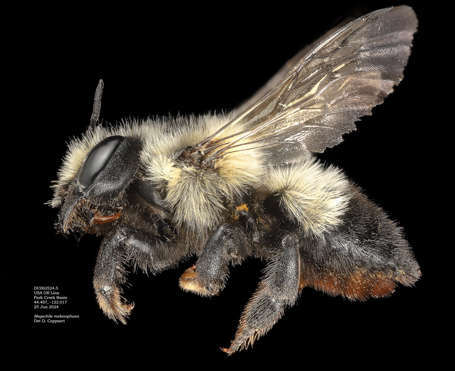 A more typical M. melanophaeaBelow on this page is the anomalous all-black Megachile melanophaea. This is what melanophaea is supposed to look like.