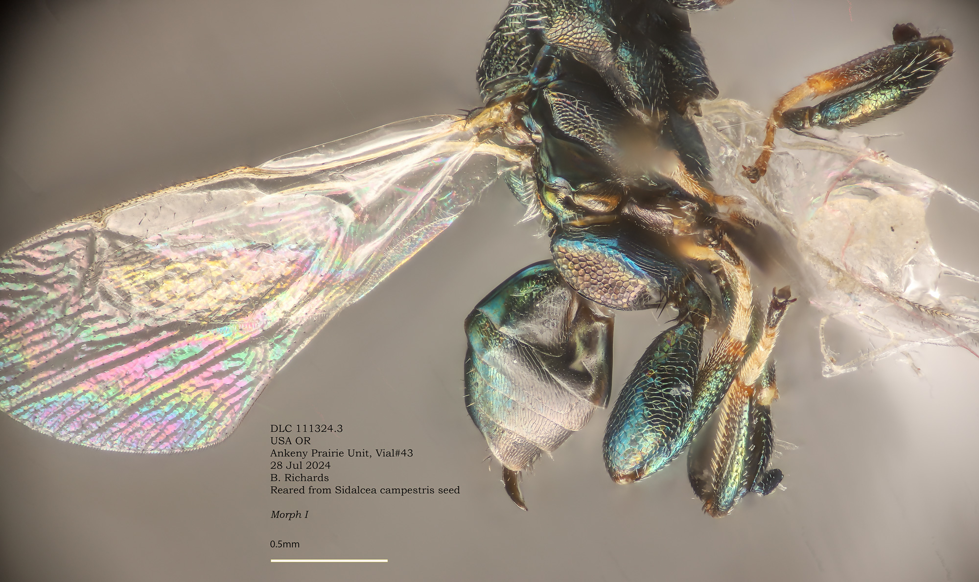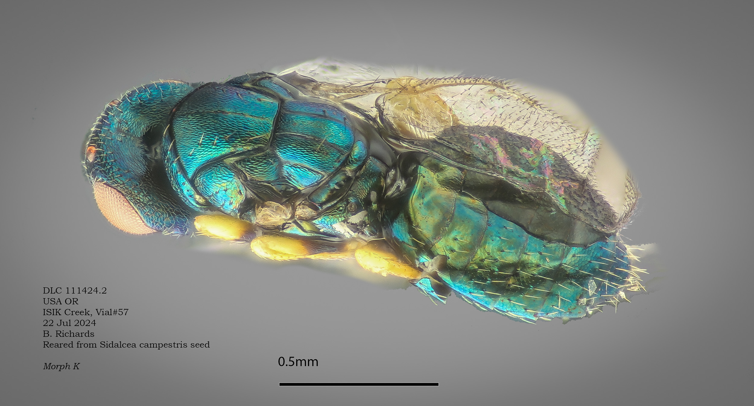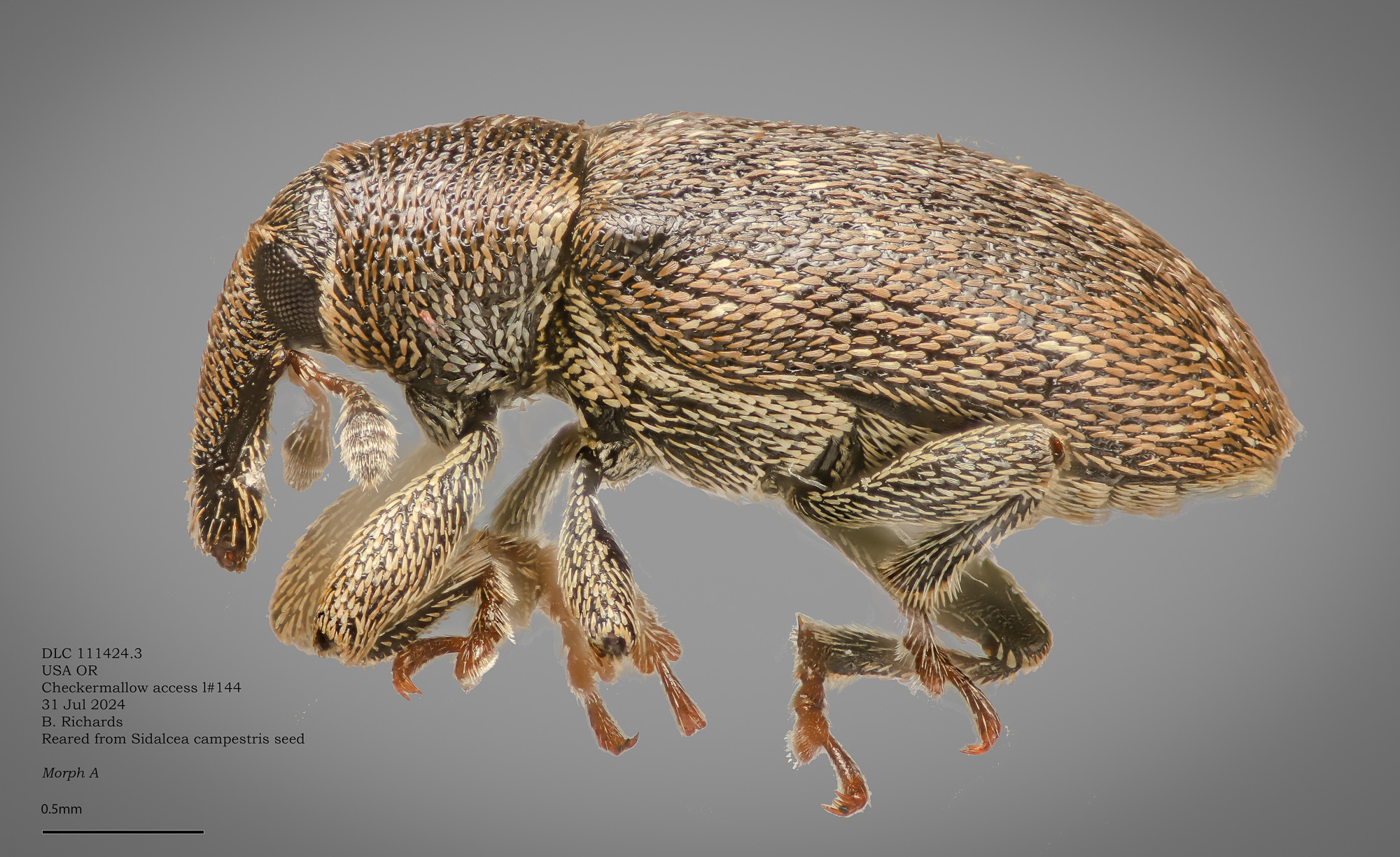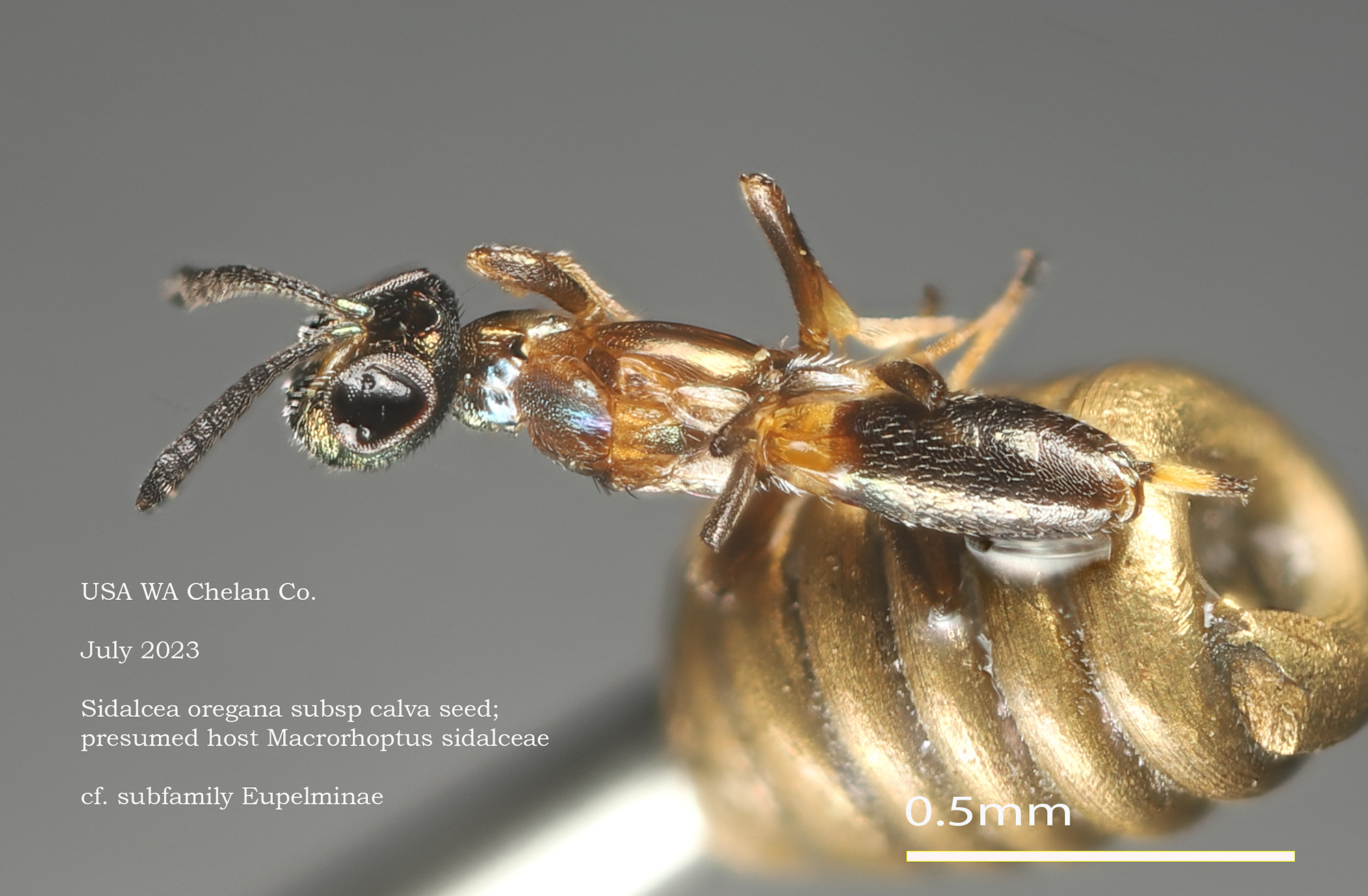 Seed predatory weevils and Sidalcea spThe checkermallows--Sidalcea sp--are prominent in prairies of the Pacific Northwest, and important in restoration ecology. However there is a significant obstacle to seed production: predation by weevils, predominantly Macrorhoptus sidalceae (background here). I am working with Brooklyn Richards of Oregon State University to document the weevil species, and the parasitoids that attack them. Photos here are of the species collected from Sidalcea campestris seed in 2024. Parasitoid IDs are challenging. My shortcut was to ask Jeong Yoo, a Chalcidoidea specialist on iNat. I am sending her additional photos to narrow down the diagnoses. |