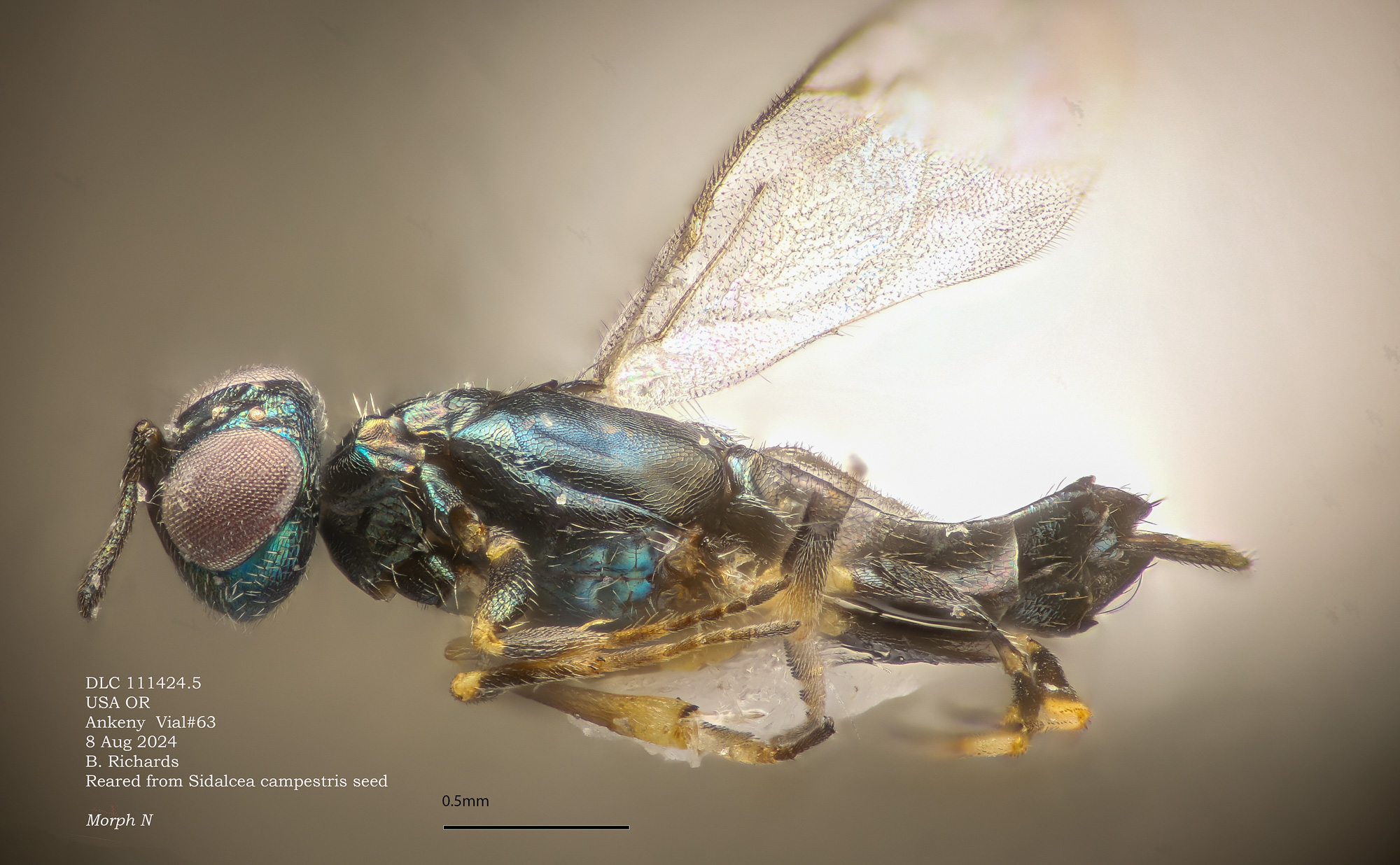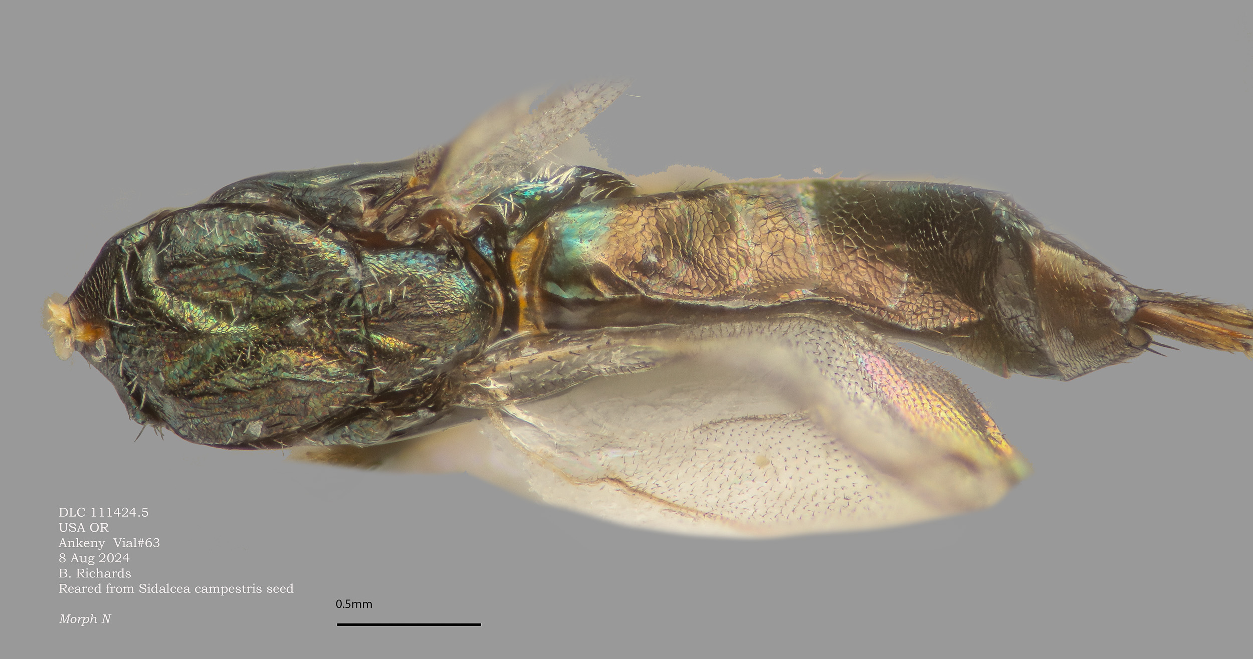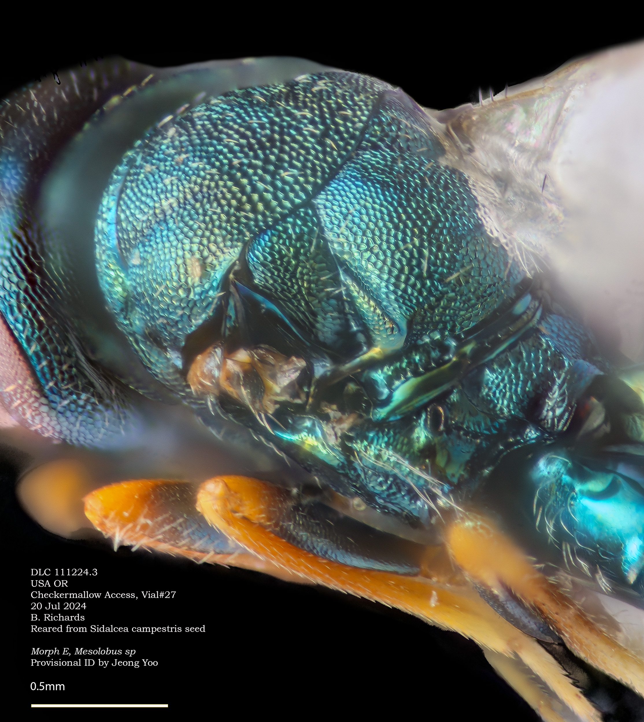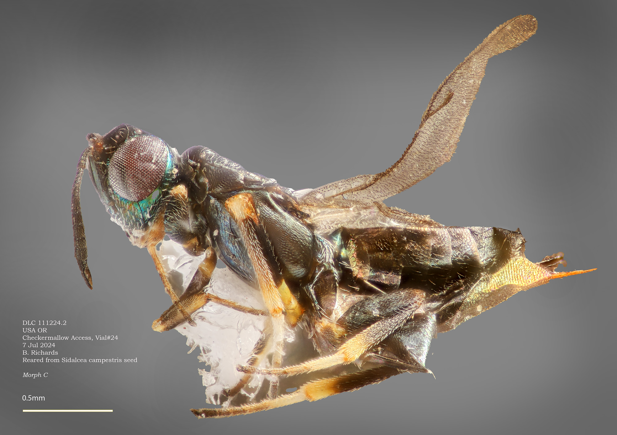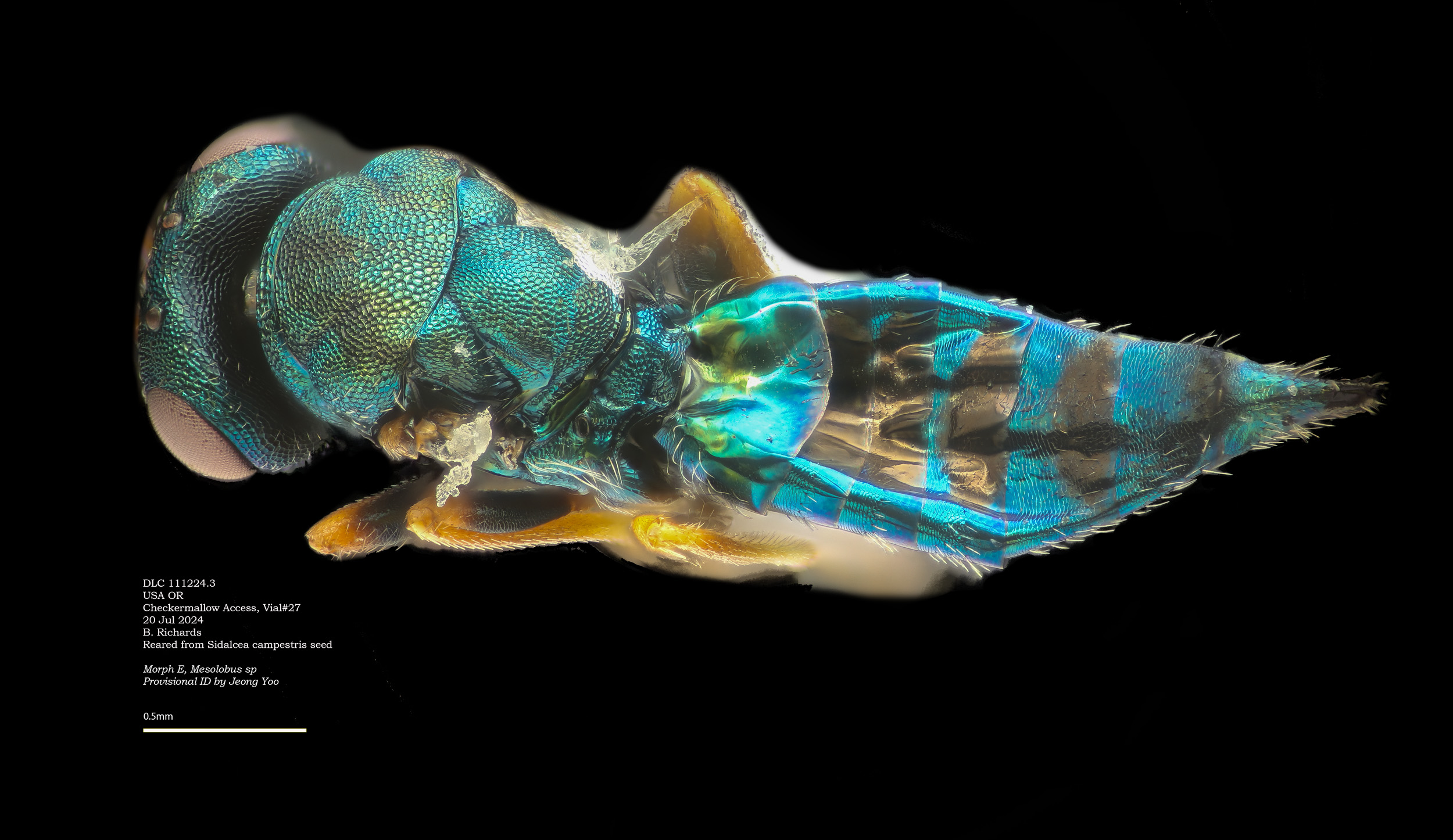Seed predatory weevils and Sidalcea spThe checkermallows--Sidalcea sp--are prominent in prairies of the Pacific Northwest, and important in restoration ecology. However there is a significant obstacle to seed production: predation by weevils, predominantly Macrorhoptus sidalceae (background here). I am working with Brooklyn Richards of Oregon State University to document the weevil species, and the parasitoids that attack them. Photos here are of the species collected from Sidalcea campestris seed in 2024. Parasitoid IDs are challenging. My shortcut was to ask Jeong Yoo, a Chalcidoidea specialist on iNat. I am sending her additional photos to narrow down the diagnoses. |
