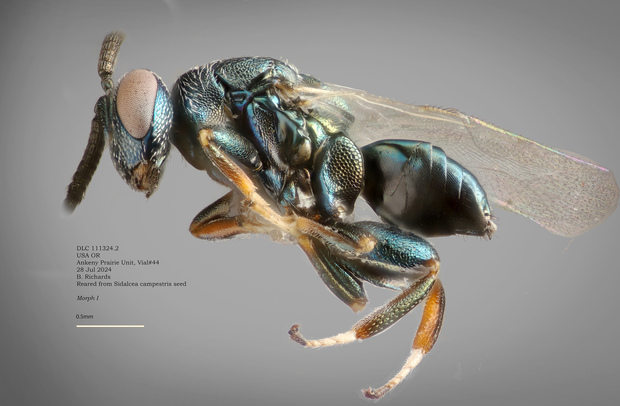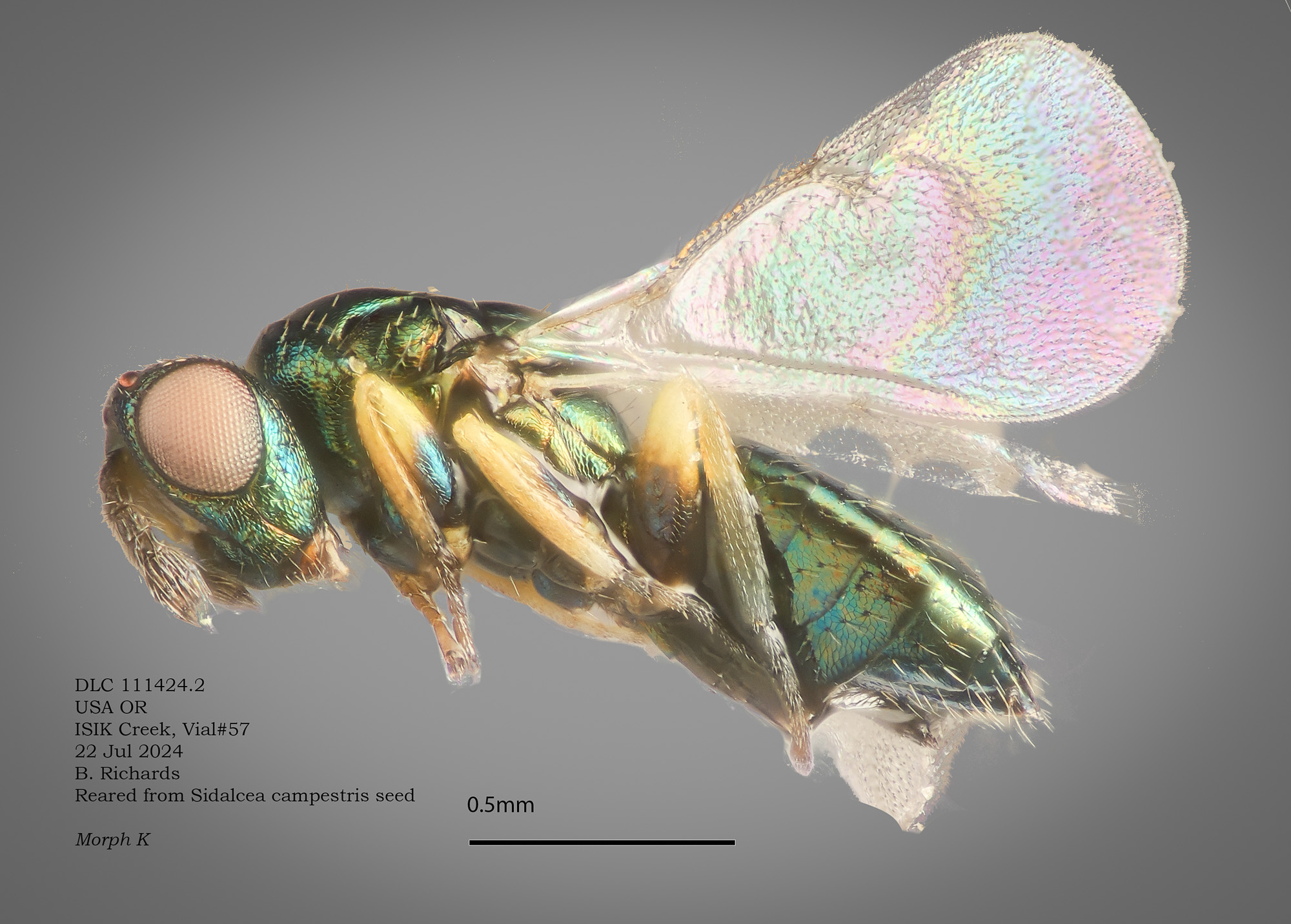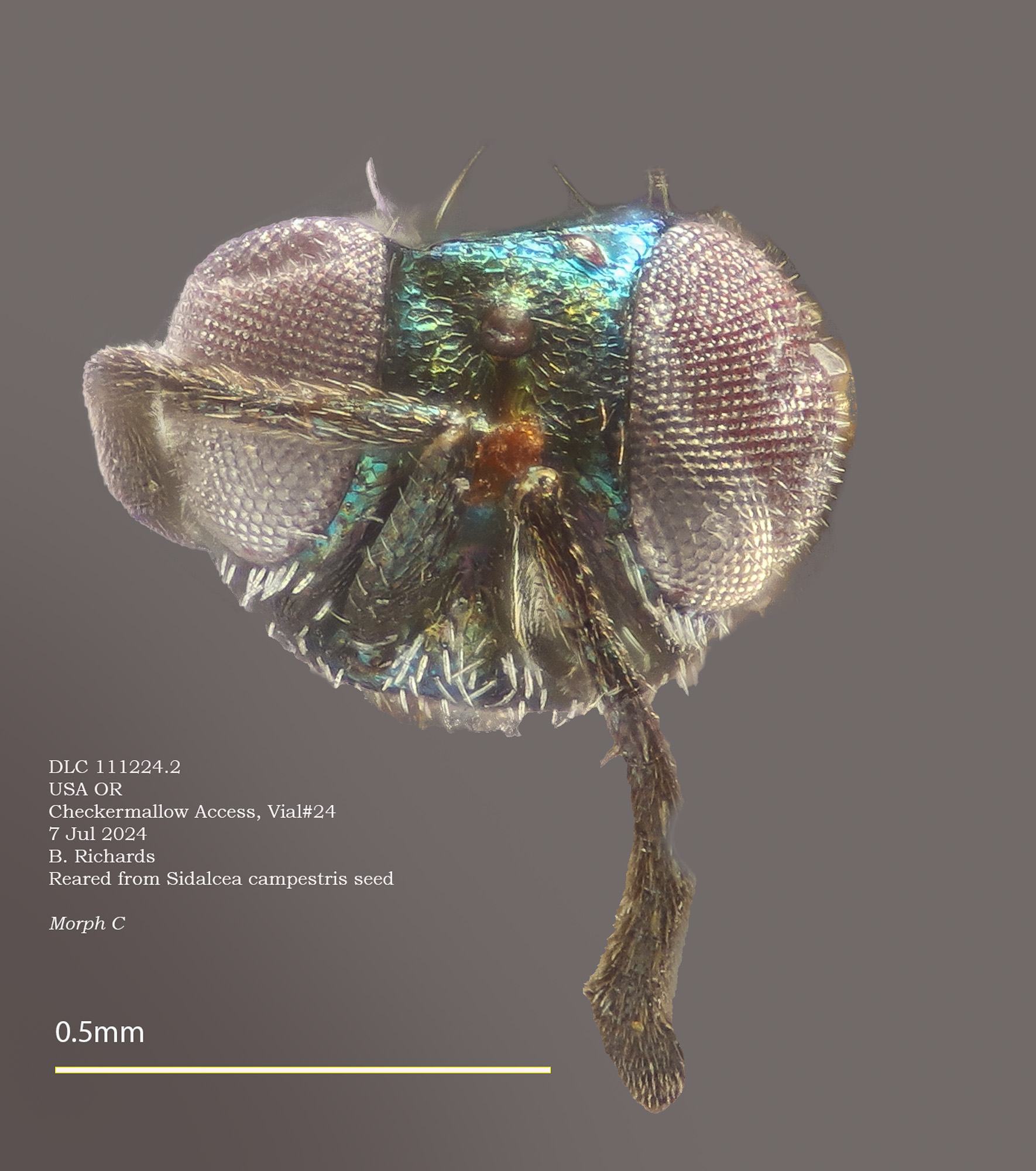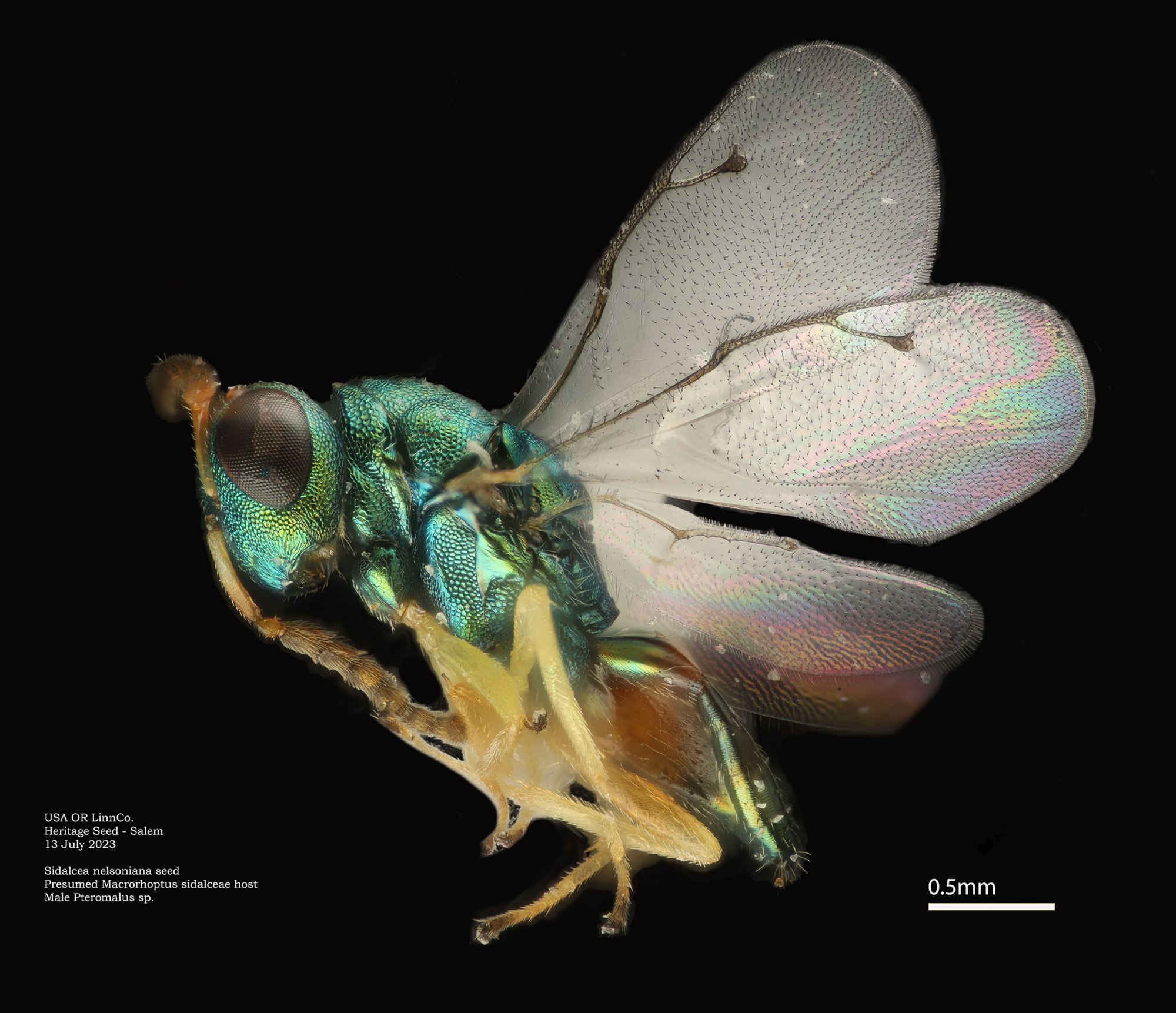 Seed predatory weevils and Sidalcea spThe checkermallows--Sidalcea sp--are prominent in prairies of the Pacific Northwest, and important in restoration ecology. However there is a significant obstacle to seed production: predation by weevils, predominantly Macrorhoptus sidalceae (background here). I am working with Brooklyn Richards of Oregon State University to document the weevil species, and the parasitoids that attack them. Photos here are of the species collected from Sidalcea campestris seed in 2024. Parasitoid IDs are challenging. My shortcut was to ask Jeong Yoo, a Chalcidoidea specialist on iNat. I am sending her additional photos to narrow down the diagnoses. |