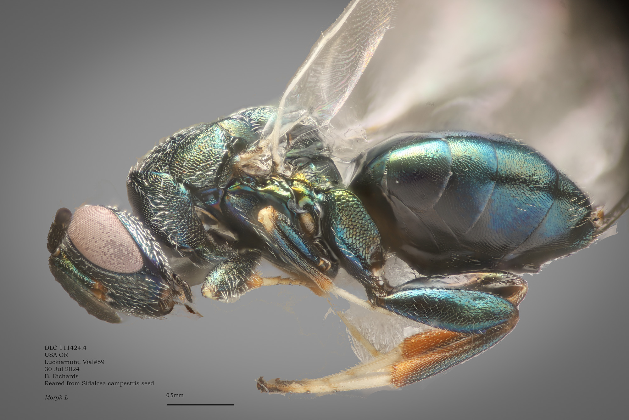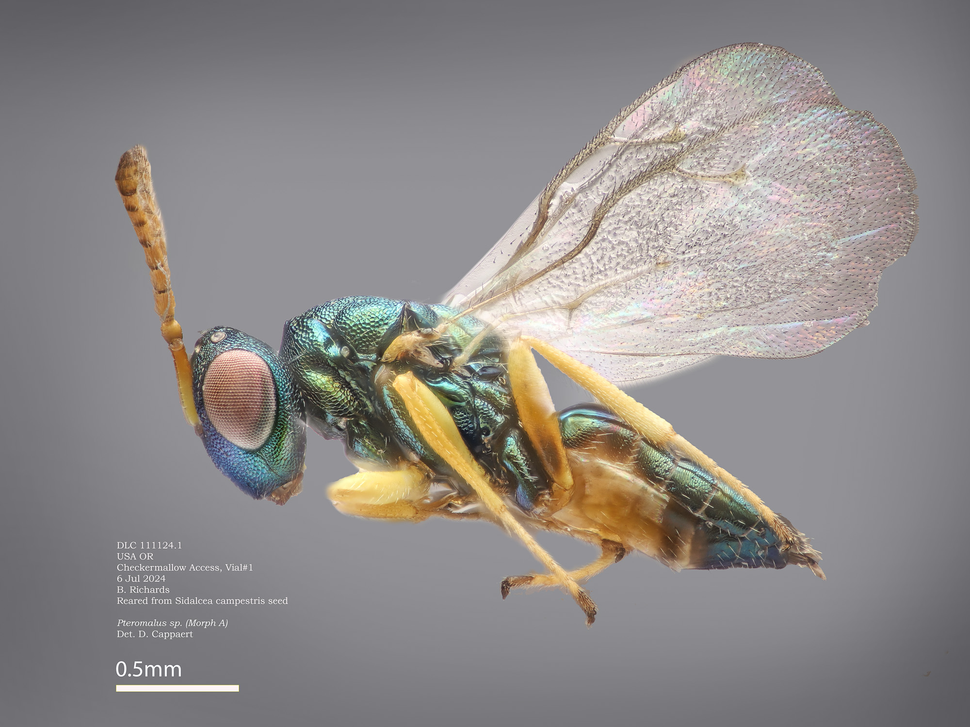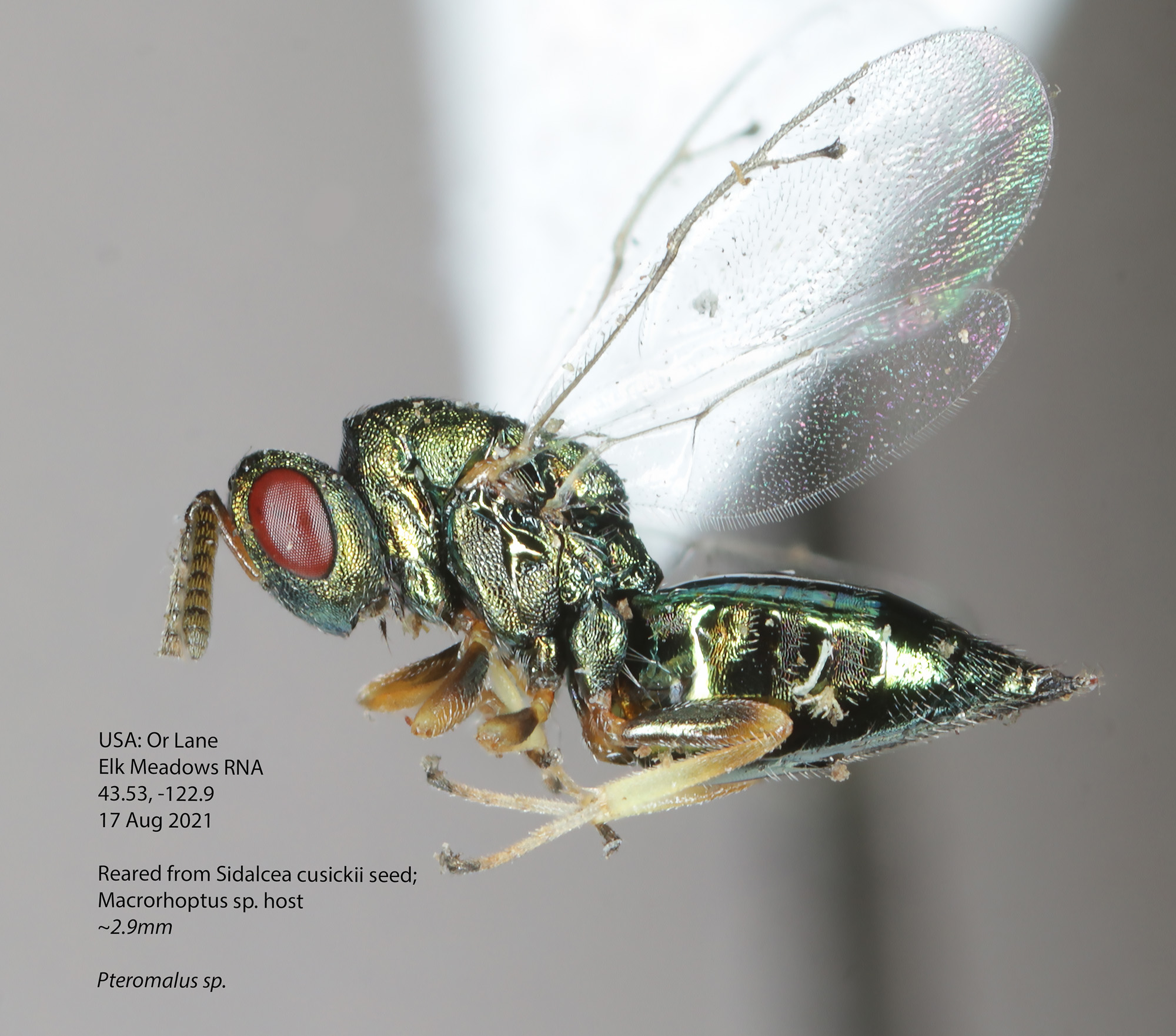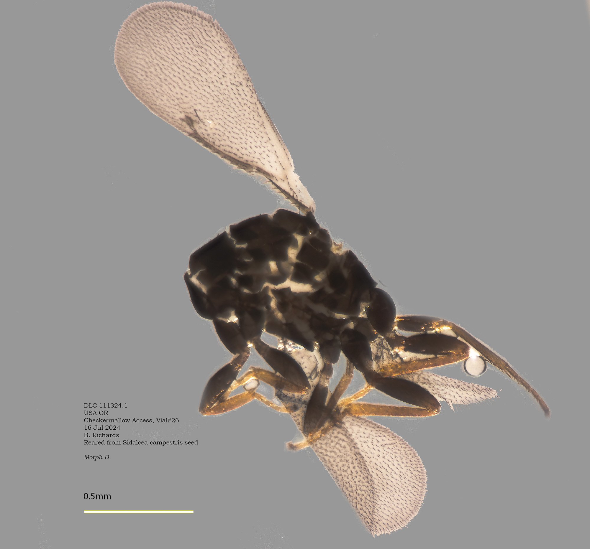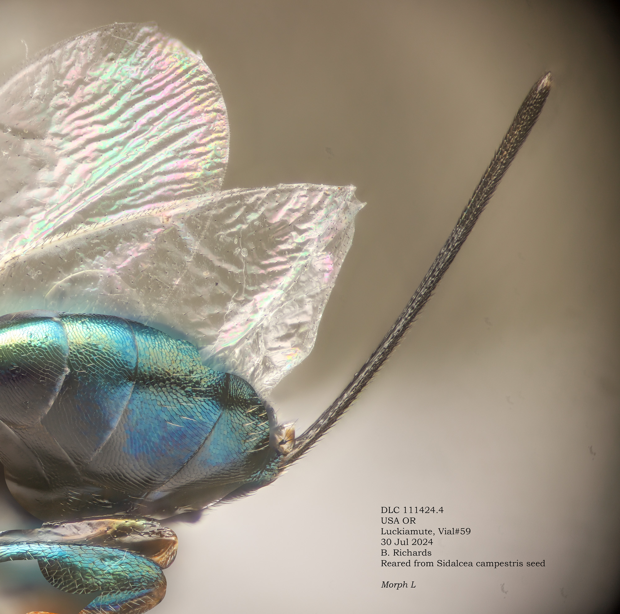 Seed predatory weevils and Sidalcea spThe checkermallows--Sidalcea sp--are prominent in prairies of the Pacific Northwest, and important in restoration ecology. However there is a significant obstacle to seed production: predation by weevils, predominantly Macrorhoptus sidalceae (background here). I am working with Brooklyn Richards of Oregon State University to document the weevil species, and the parasitoids that attack them. Photos here are of the species collected from Sidalcea campestris seed in 2024. Parasitoid IDs are challenging. My shortcut was to ask Jeong Yoo, a Chalcidoidea specialist on iNat. I am sending her additional photos to narrow down the diagnoses. |