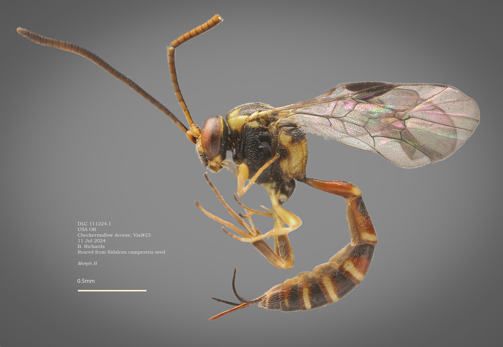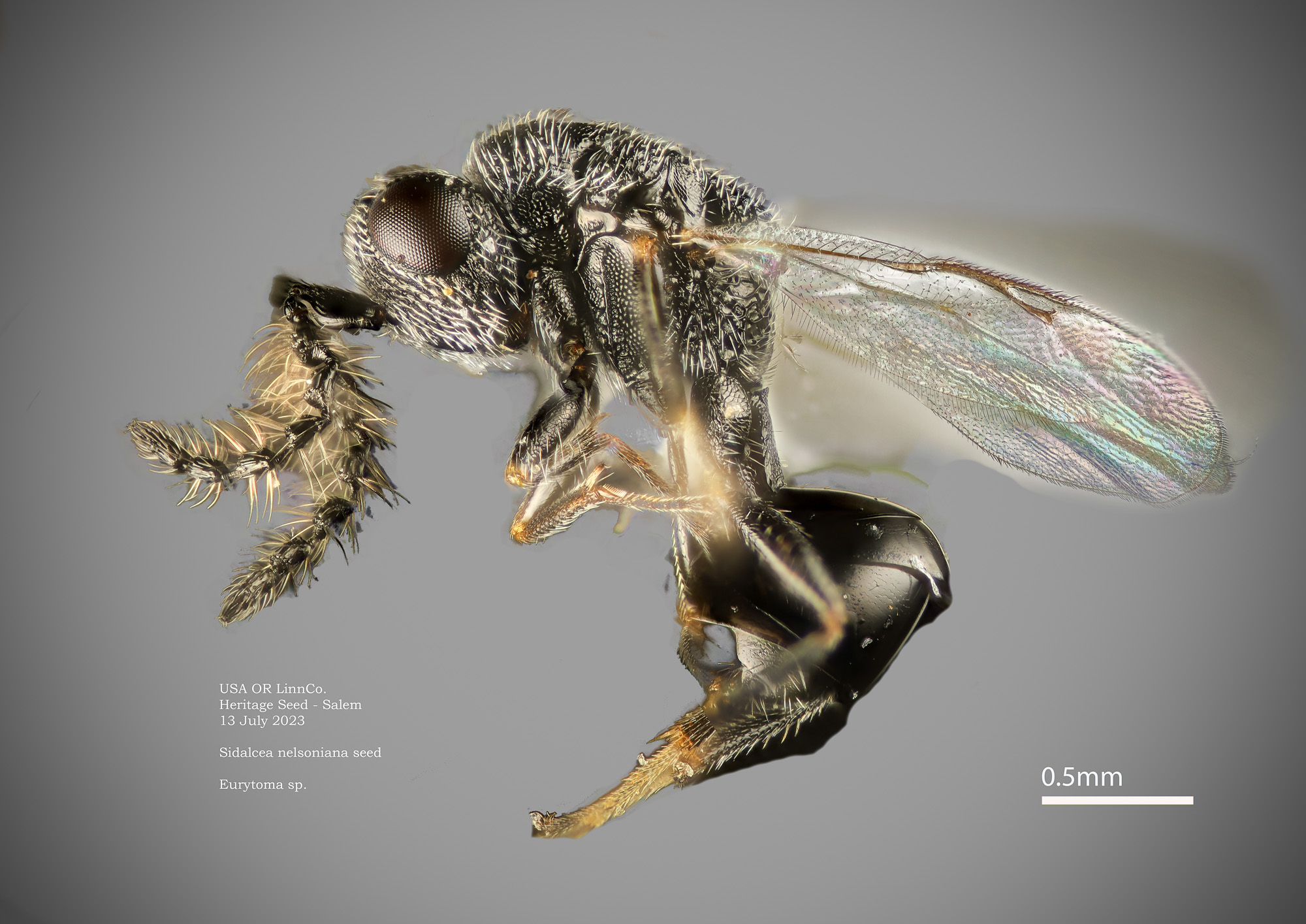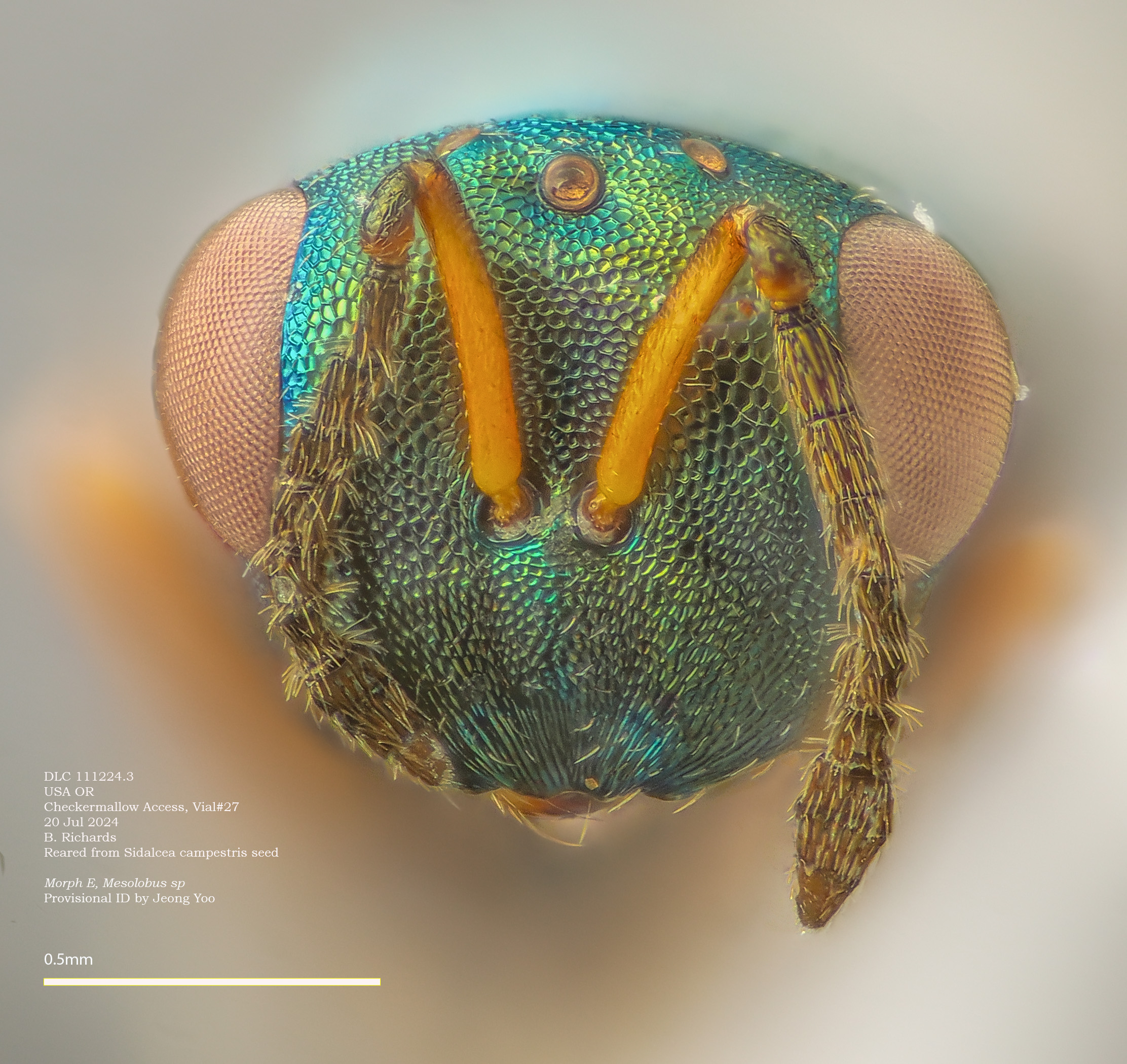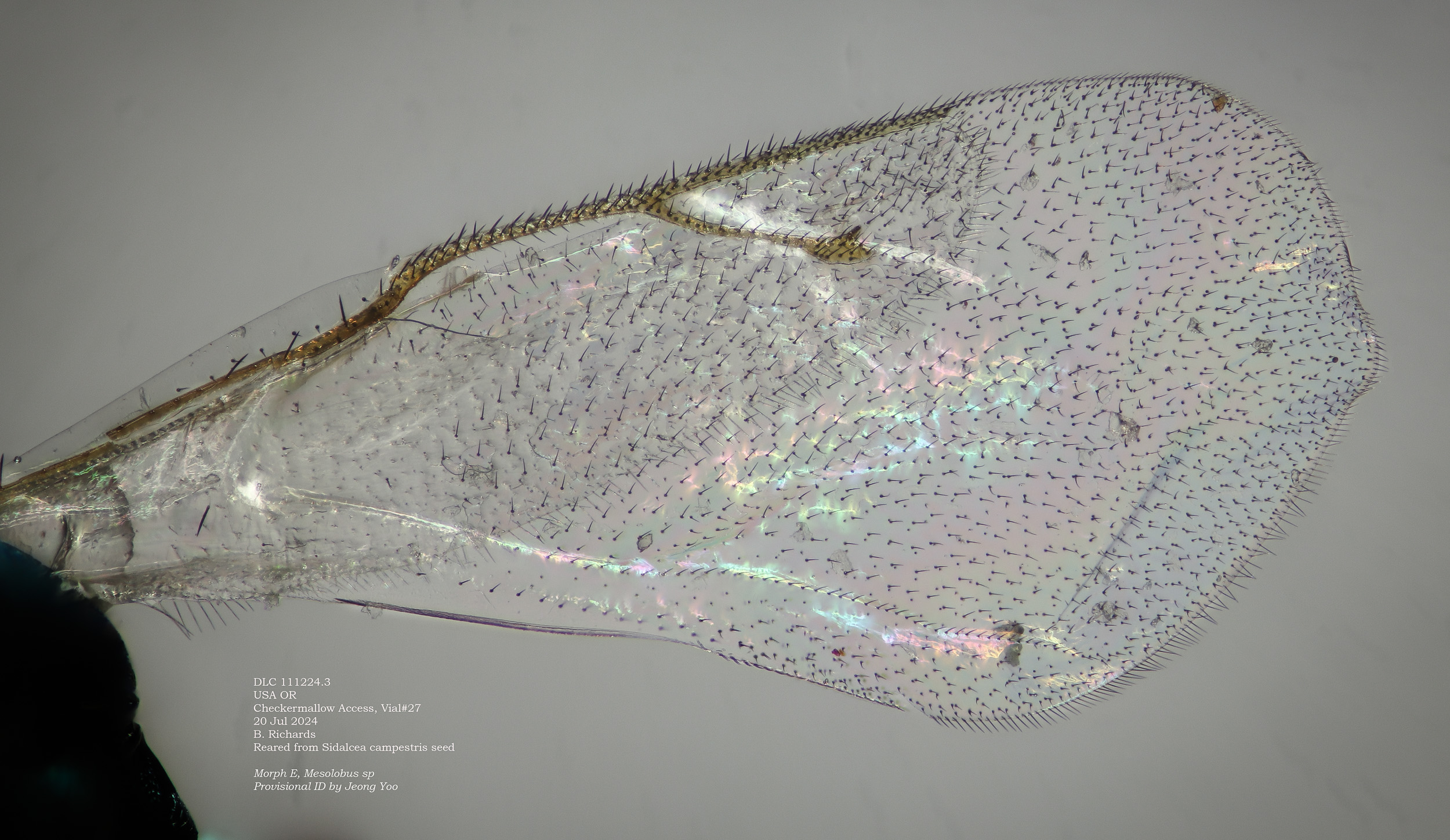 Seed predatory weevils and Sidalcea spThe checkermallows--Sidalcea sp--are prominent in prairies of the Pacific Northwest, and important in restoration ecology. However there is a significant obstacle to seed production: predation by weevils, predominantly Macrorhoptus sidalceae (background here). I am working with Brooklyn Richards of Oregon State University to document the weevil species, and the parasitoids that attack them. Photos here are of the species collected from Sidalcea campestris seed in 2024. Parasitoid IDs are challenging. My shortcut was to ask Jeong Yoo, a Chalcidoidea specialist on iNat. I am sending her additional photos to narrow down the diagnoses. |