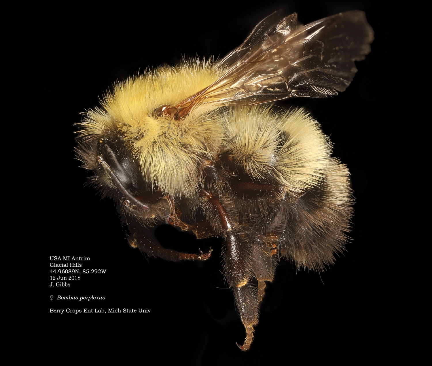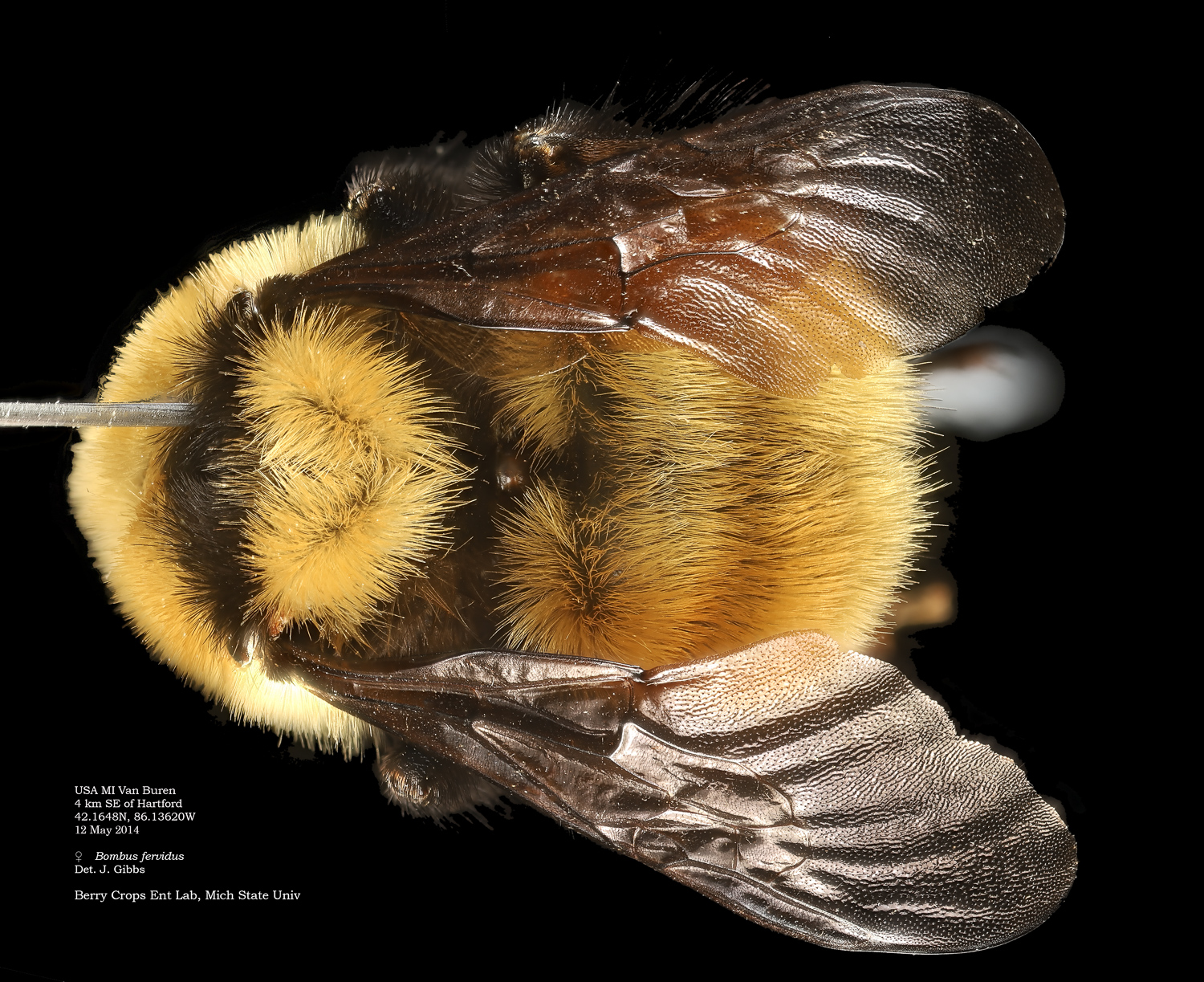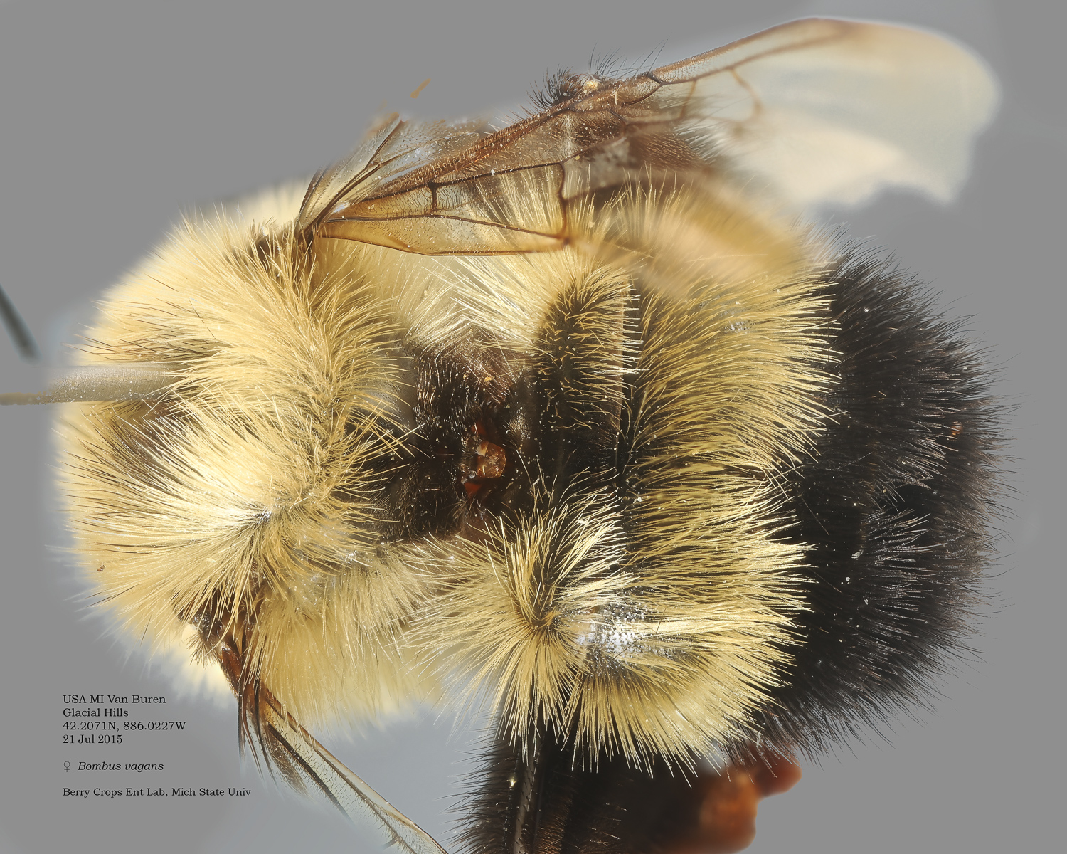 Bombus of MIB. impatiens is the most abundant MI species (according to iNat). But not so much as I used to suppose. I have to confess that I have historically lumped bimaculatus and griseocollis with impatiens, because they are similar, and because I didn't really pay attention. I've seen a lot of B. grisecollis, now recognize the yellow on T2 and face. |