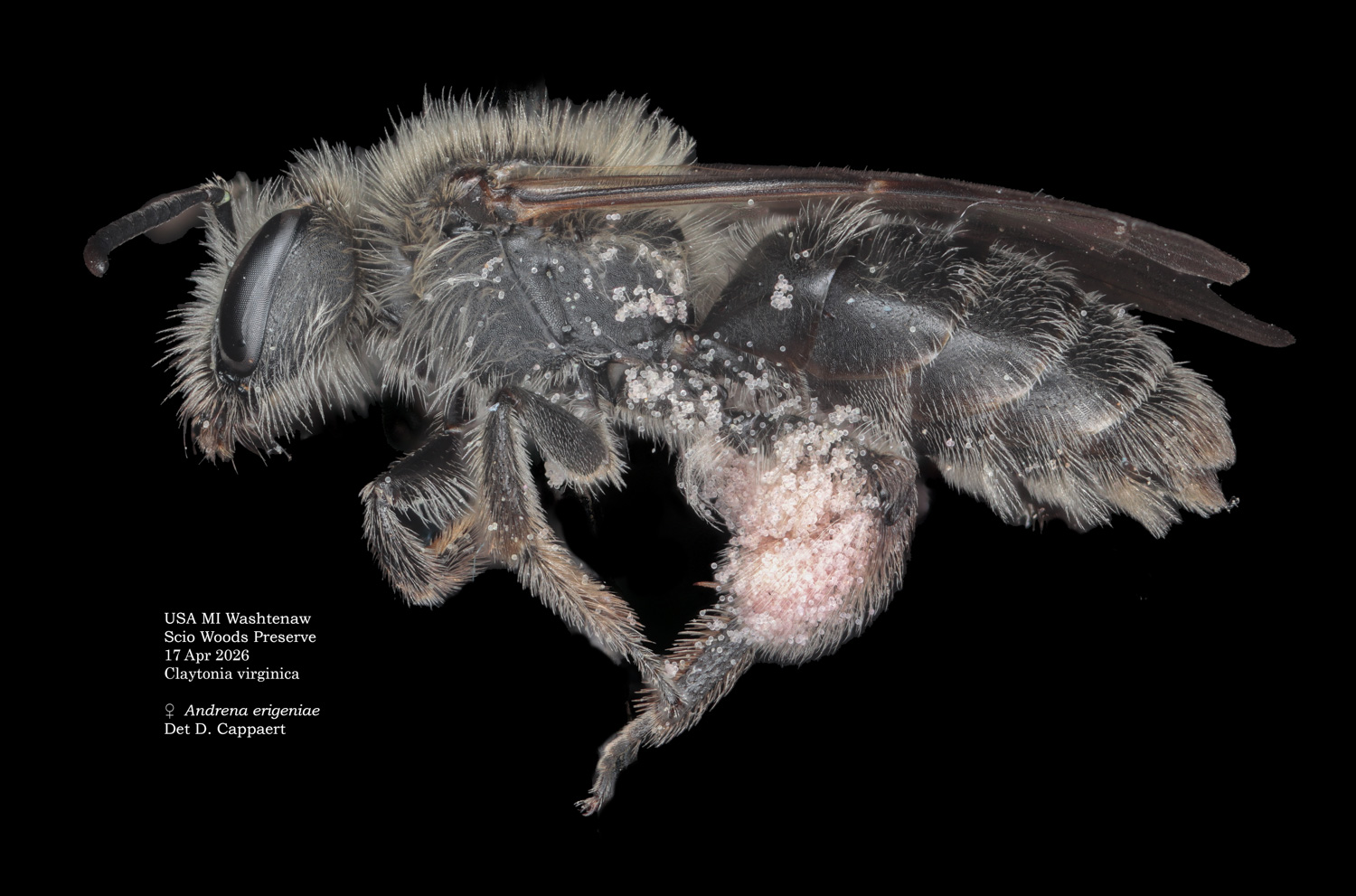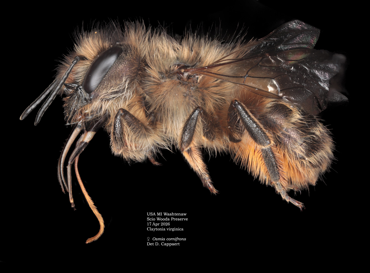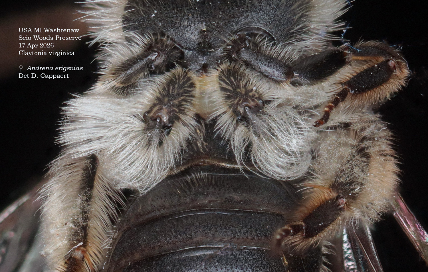 With Shawn Severance, Washtenaw County Naturalist, I am organizing a study of pollinators of spring ephemerals (more info). We'll identify floral visitors, and look at how they are distributed among plant species. For most of April and May, I'll use this page for news of the ephemerals project, most recent info first.