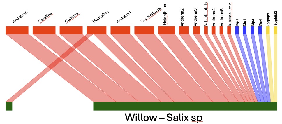 Willow, Salix sppWillows are one of the main nectar/pollen resources for pollinators that emerge early, before most spring wildflowers are in bloom.