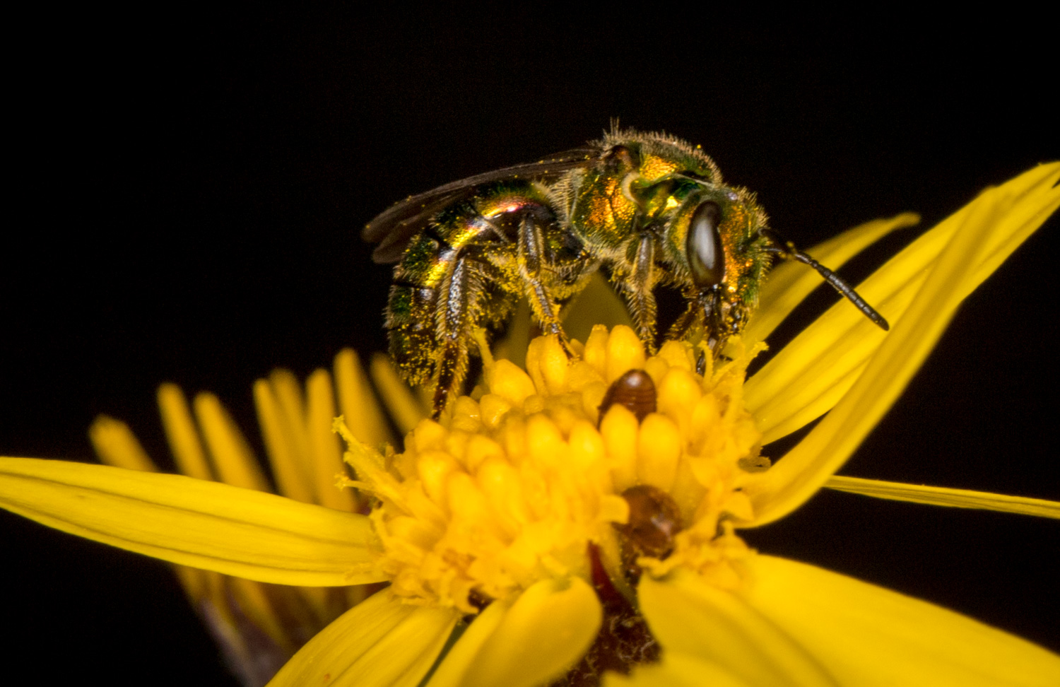 Sweat bee Augoprochlora pura. How do you know it is a female? Stinger.