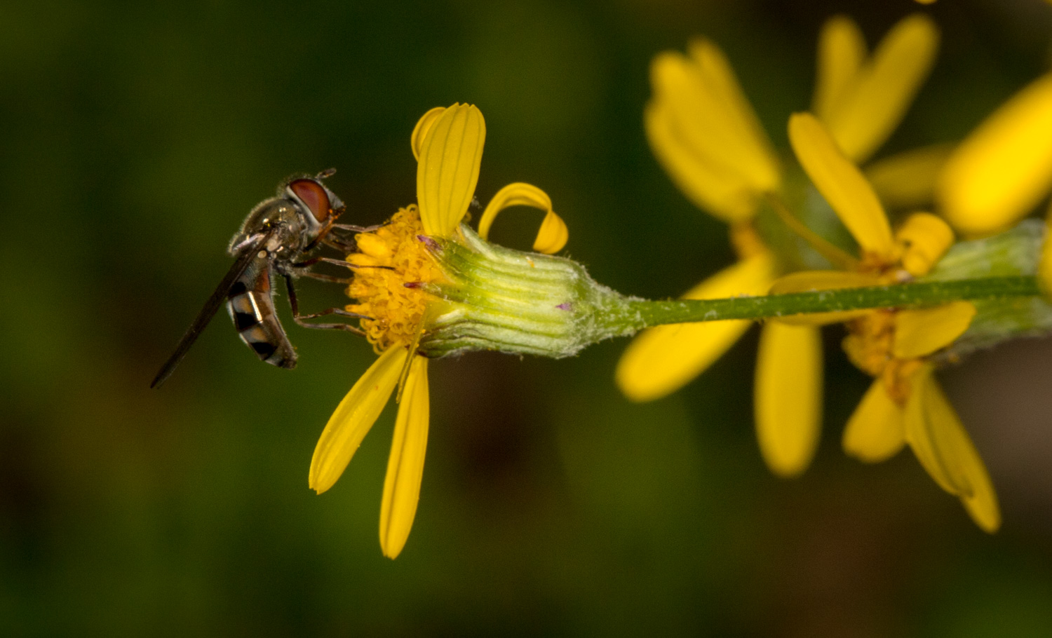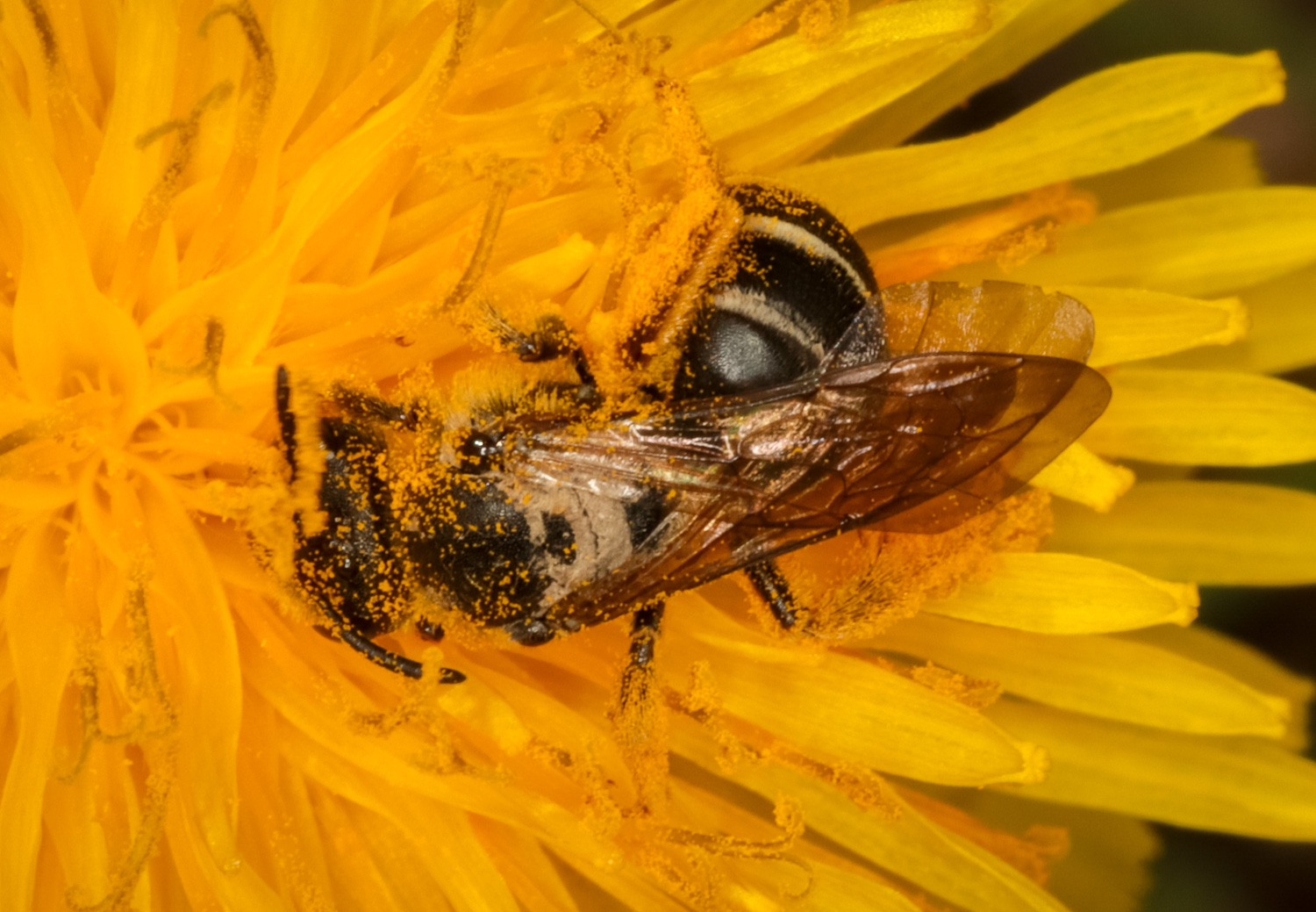 A Nomad bee female. These are cuckoo bees, that lay their eggs in the nests of mining bees, where they feed on the pollen stores.