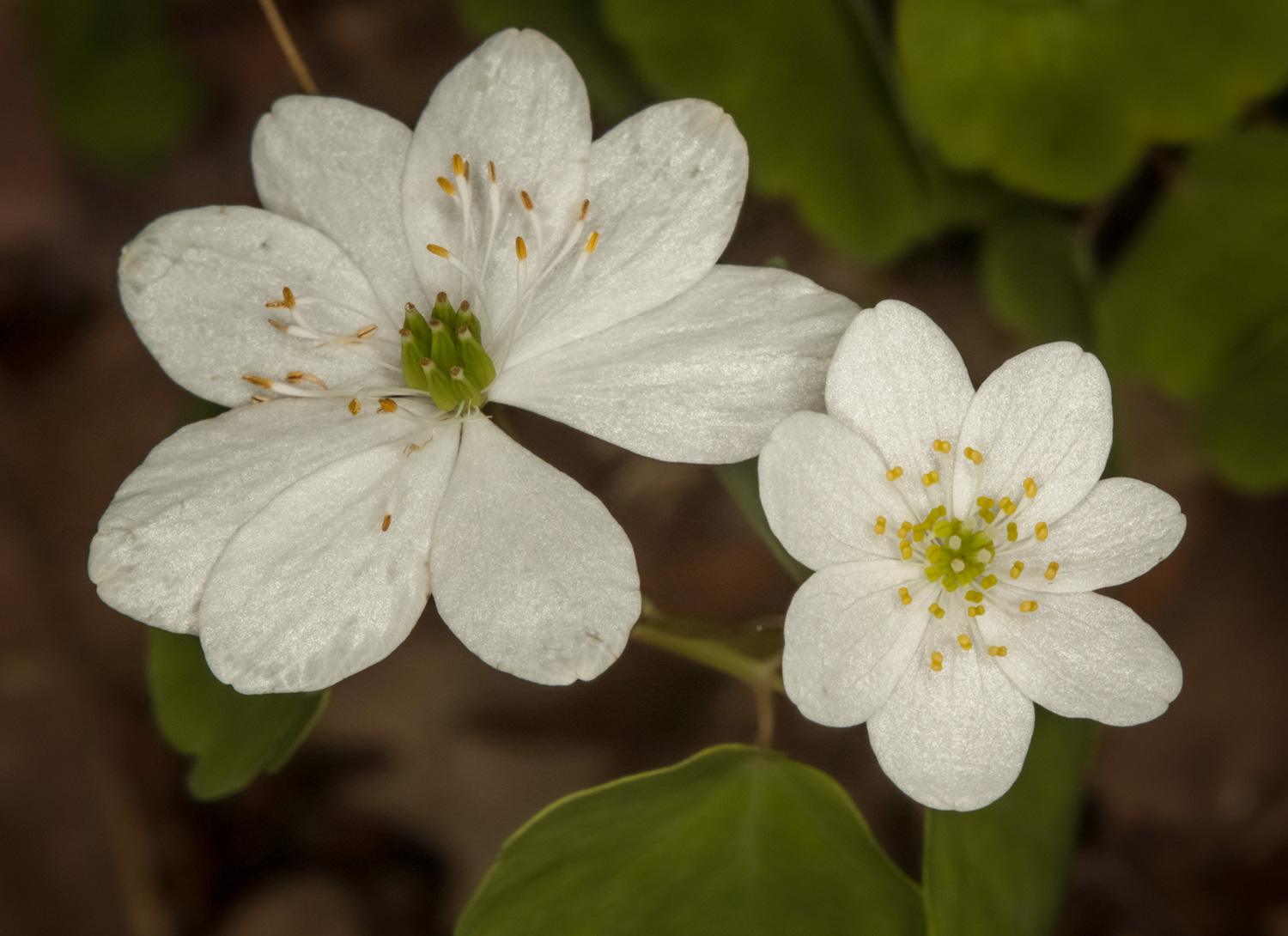 On April 13, spring beauty is in bloom, in considerable numbers. There are bloodroot flowers here and there. |