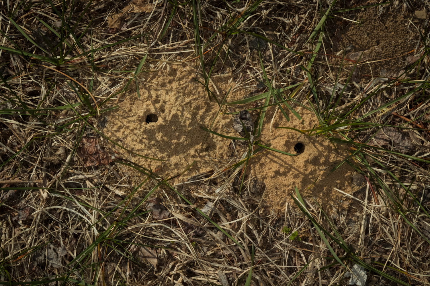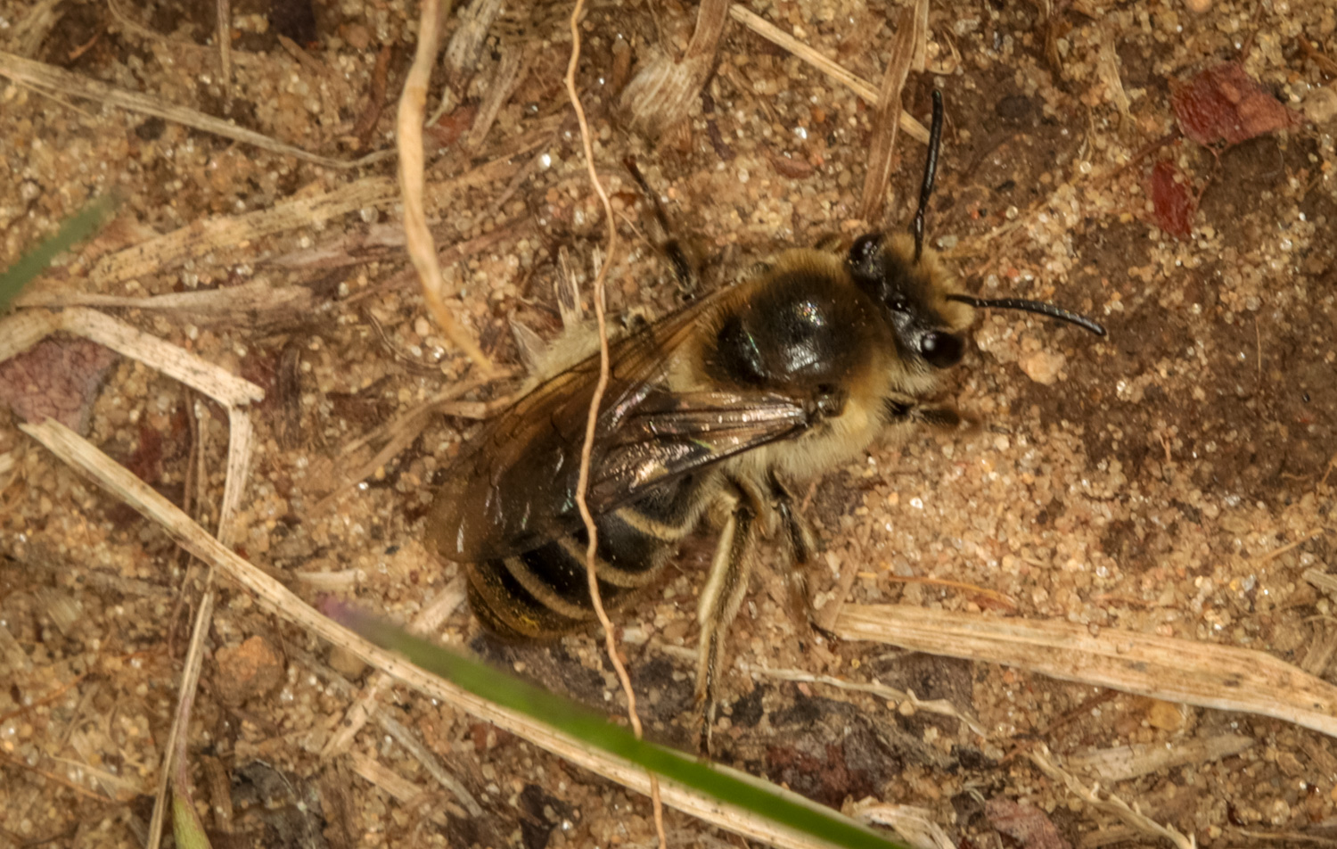 At County Farm, the ground nests of the cellophane bee are easy to find (if Shawn points them out).