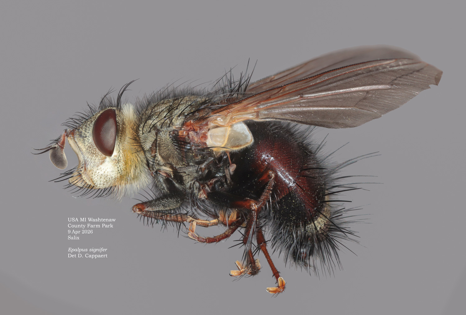 A tachinid, or bristle fly. Epalpus signifer is a parasitoid of cutworms.